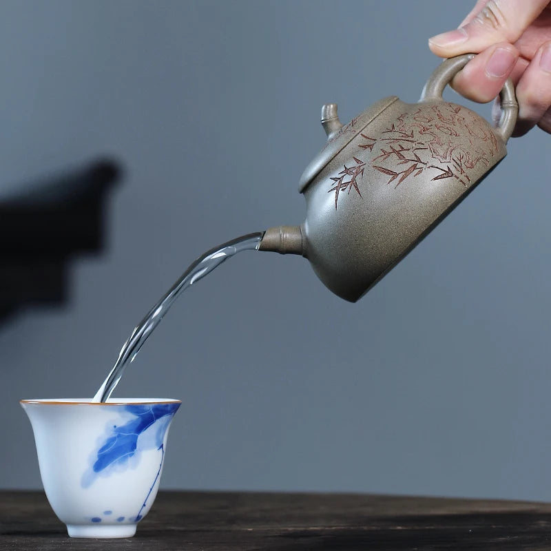 Canghu Tianxia Yixing Purple Clay Pot Pure Handcarved Kg Fu Tea Set Original Mine Qingduan Mud Small Capacity Bamboo