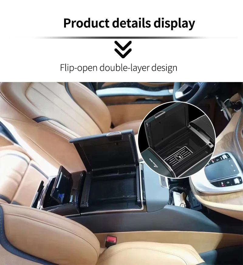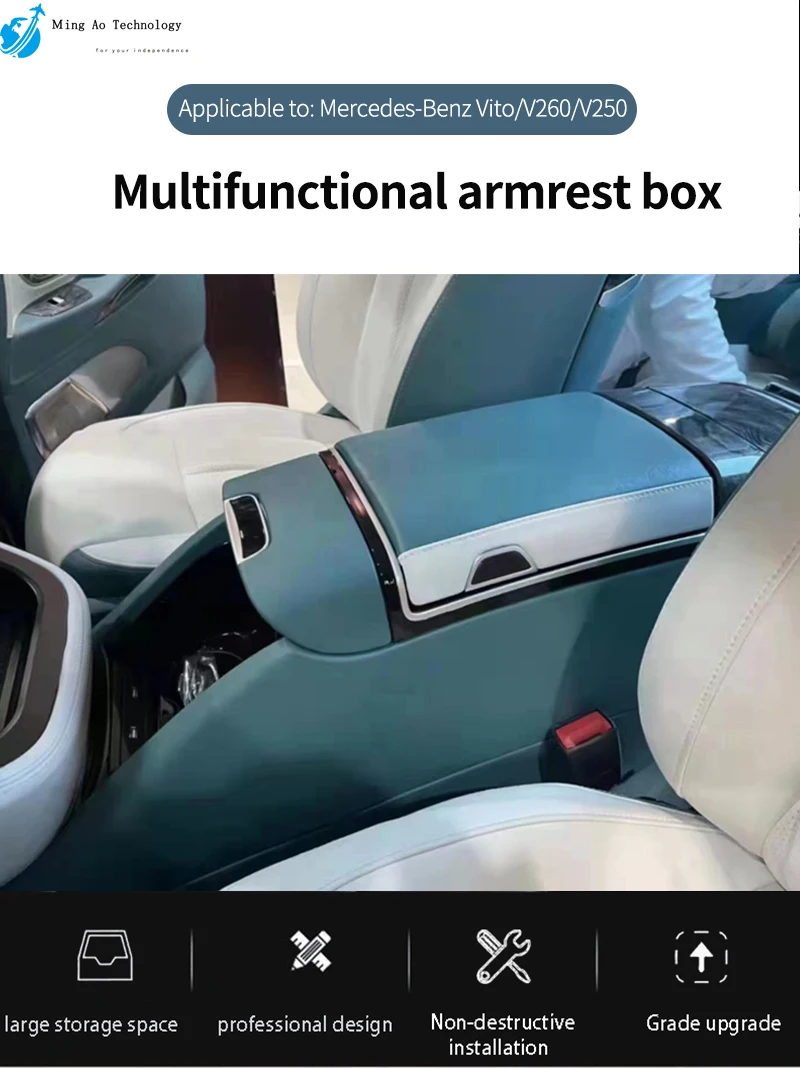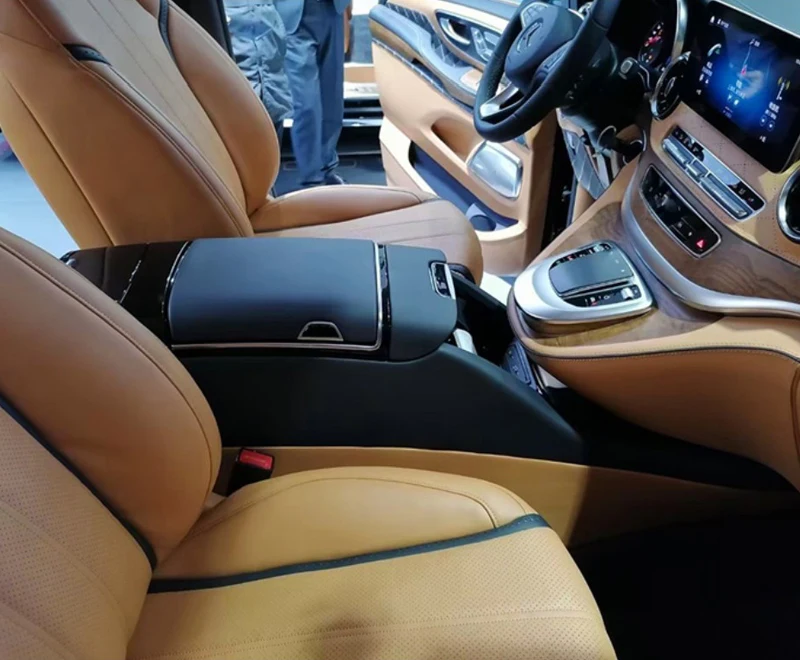 1. The benz v220d interior refitted 12v electronic refrigerator is a multi-functional model, the armrest box is a flip + flip double-layer design, comes with a wireless charging and flash charging storage box USB.220v power supply, water cup holder, etc. 2. The interior modified curtains of the sprint car are highly matched with the original car, and support personalized roof customization 3. The interior of the sprint car is modified with an on-board compressor and refrigerator, and the 7-inch touch screen can be connected to an external purifier, ambient light, ceiling light, lift TV, electric curtains and other touch screen control