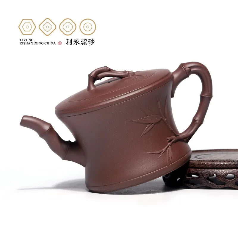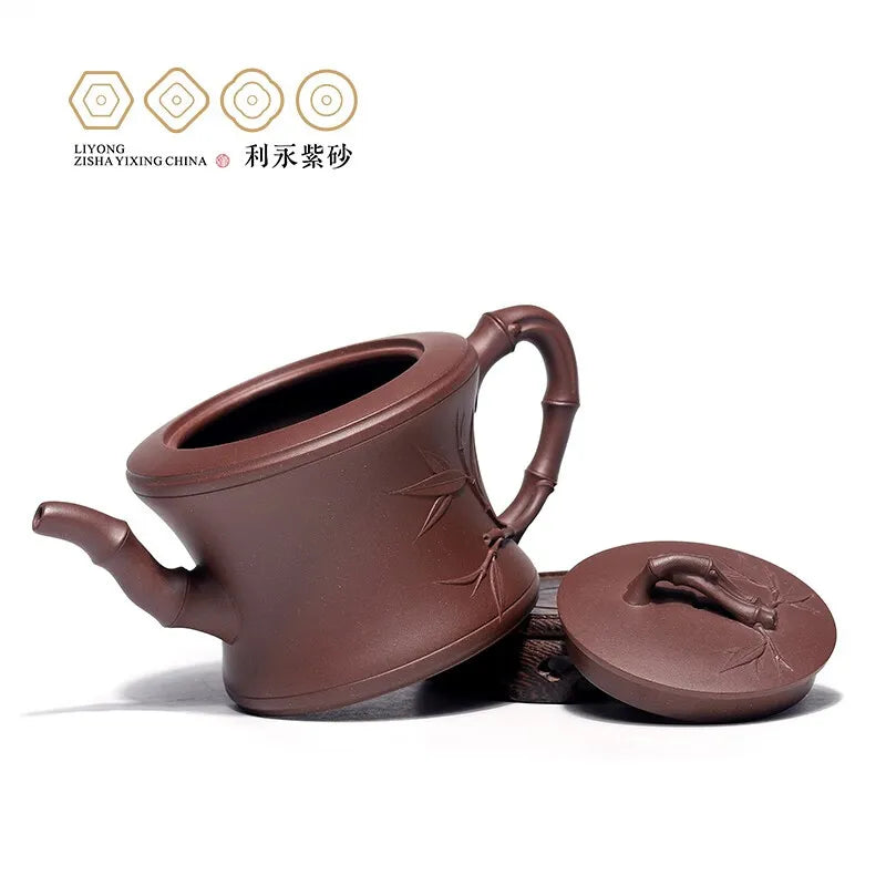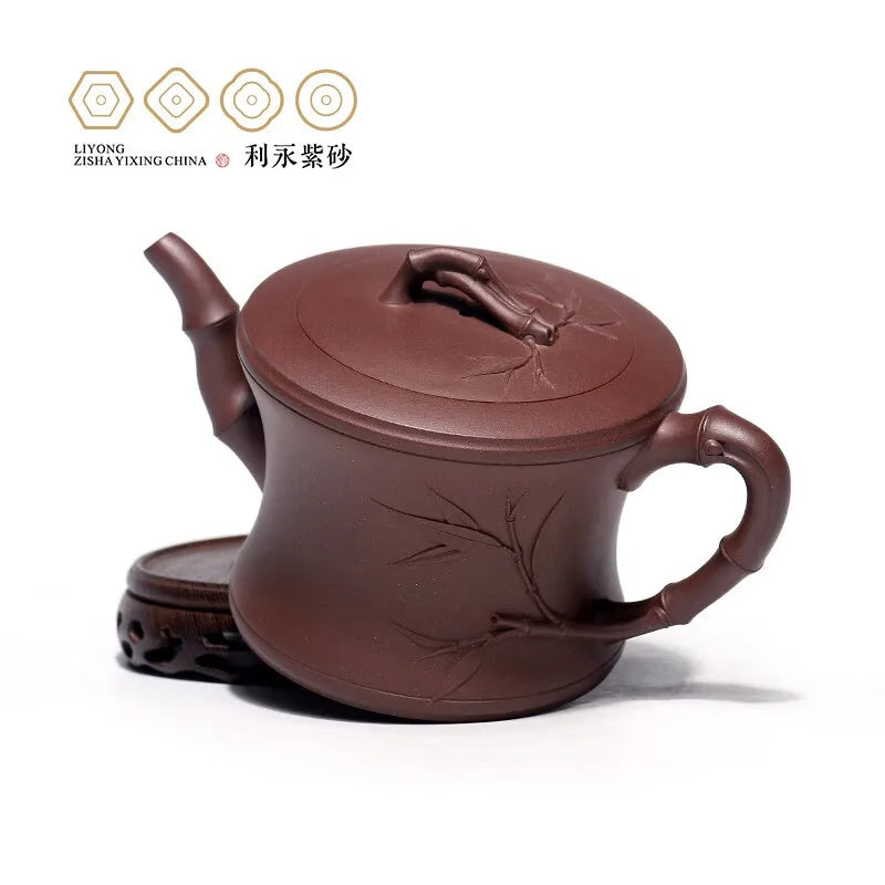 Centennial Liyong Purple Clay Pot Yixing Handmade Famous Teapot Household Kung Fu Tea Set Raw Ore Purple Clay Bamboo 460cc Purpl