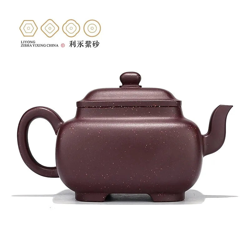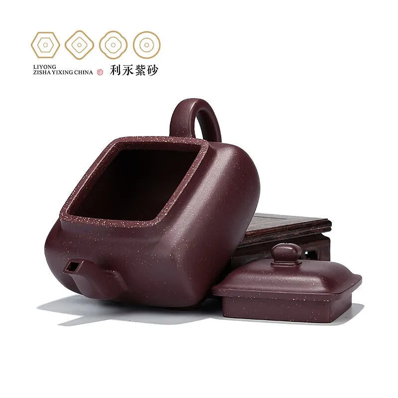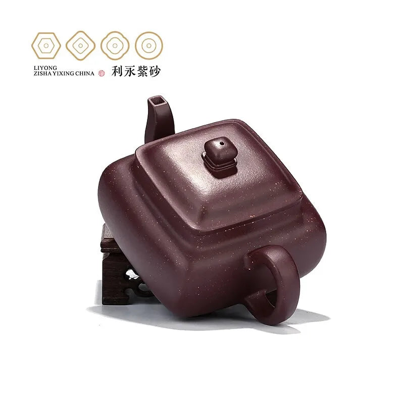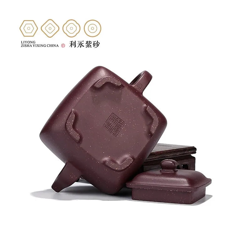 Centennial Liyong Purple Clay Teapot Handmade Famous Teapot Yixing Zisha Kung Fu Tea Set Gift Square Pot Cornerstone 340cc