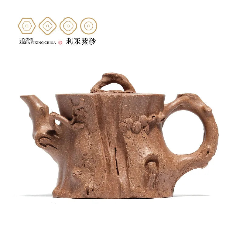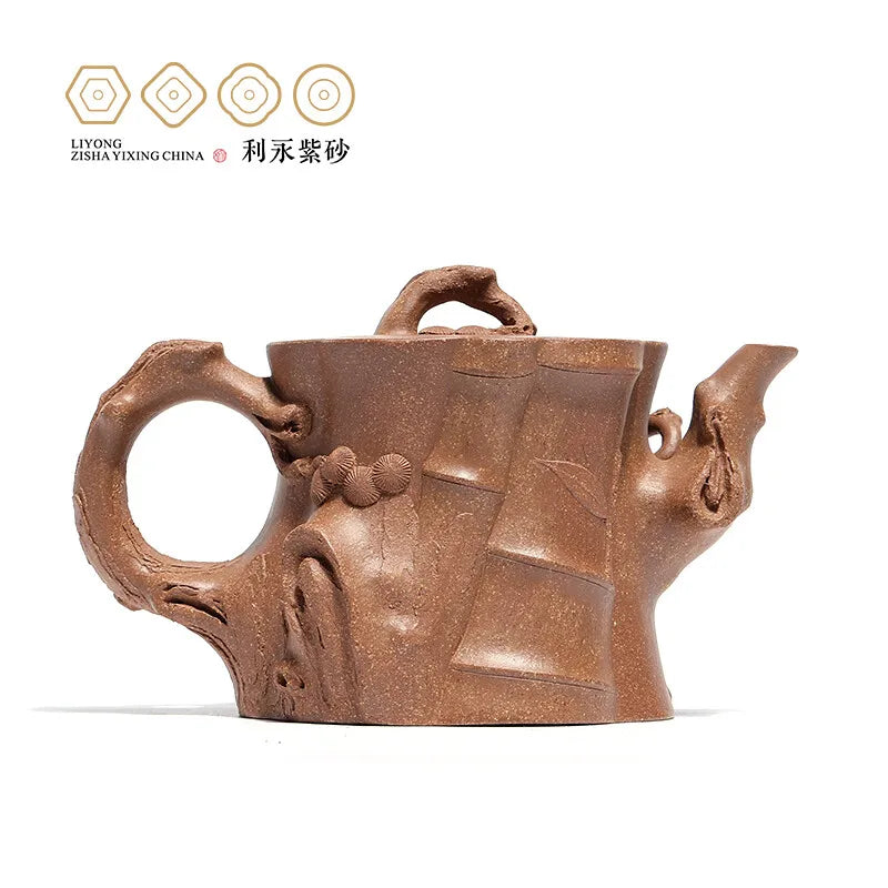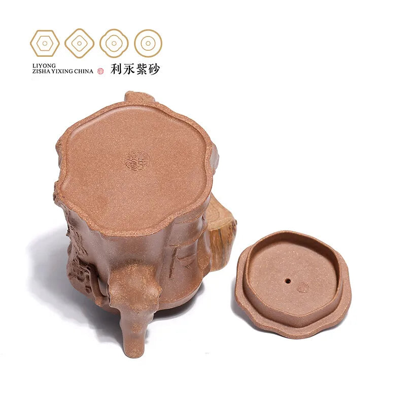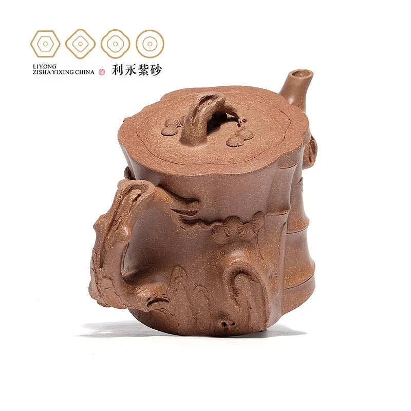 Centennial Liyong Yixing Famous Pure Handmade Purple Clay Pot Flower Ware Raw Ore Beige Clay Kung Fu Tea Set Teapot Pine Pile ·