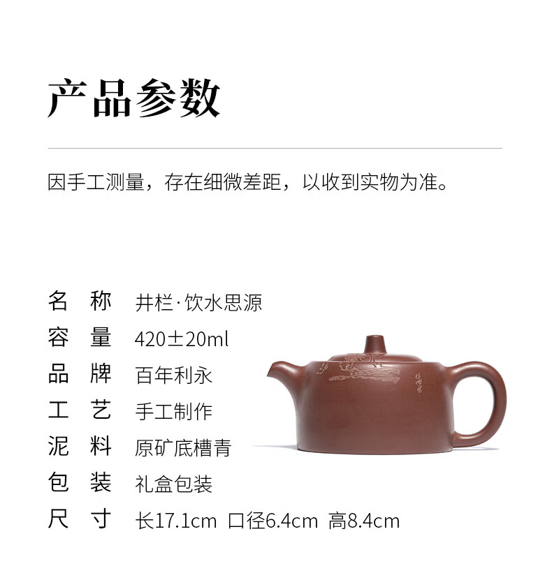 Centennial Liyong Yixing Famous Pure Handmade Purple Clay Pot Raw Ore Bottom Trough Green Well Curb · Gratitude for the Source o