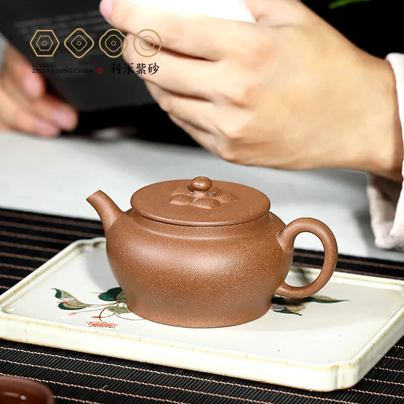 Centennial Liyong Yixing Famous Pure Handmade Purple Clay Pot Raw Ore Old Segment Mud Rhombus Flat Drum Pot Kung Fu Tea Set Teap