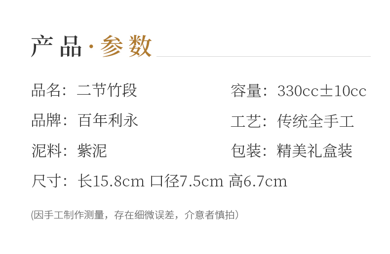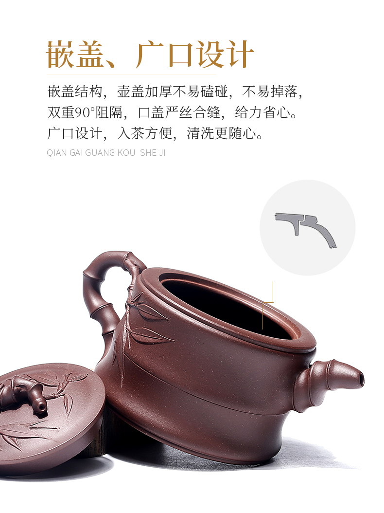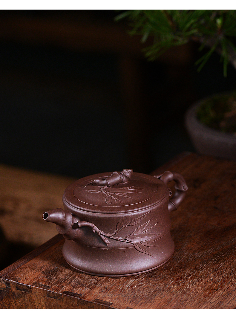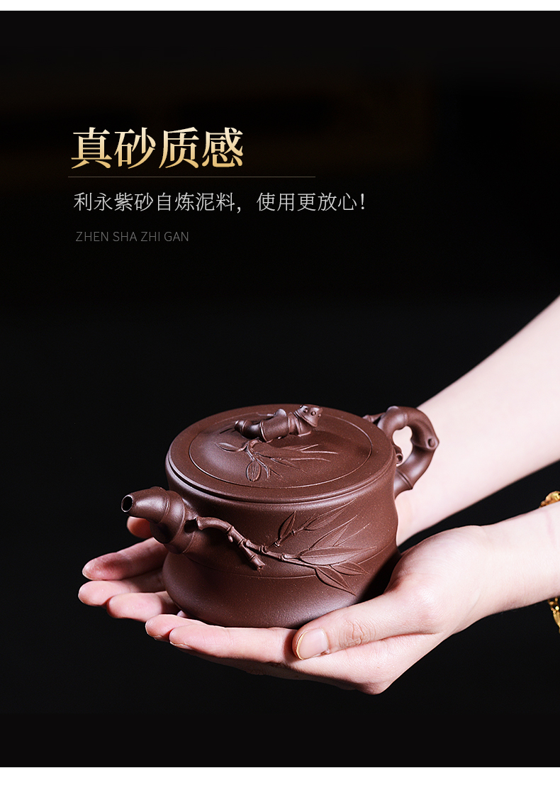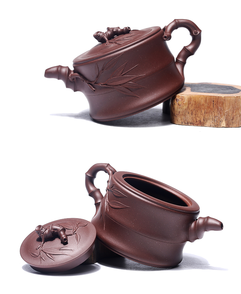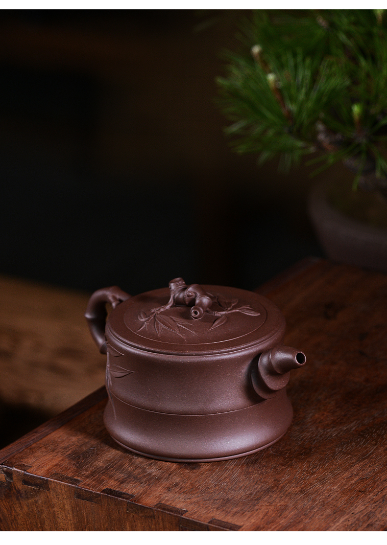 Centennial Liyong Yixing Famous Pure Handmade Purple Clay Pot Raw Ore Purple Clay Two Segments Bamboo Segment Pot Kung Fu Tea Se