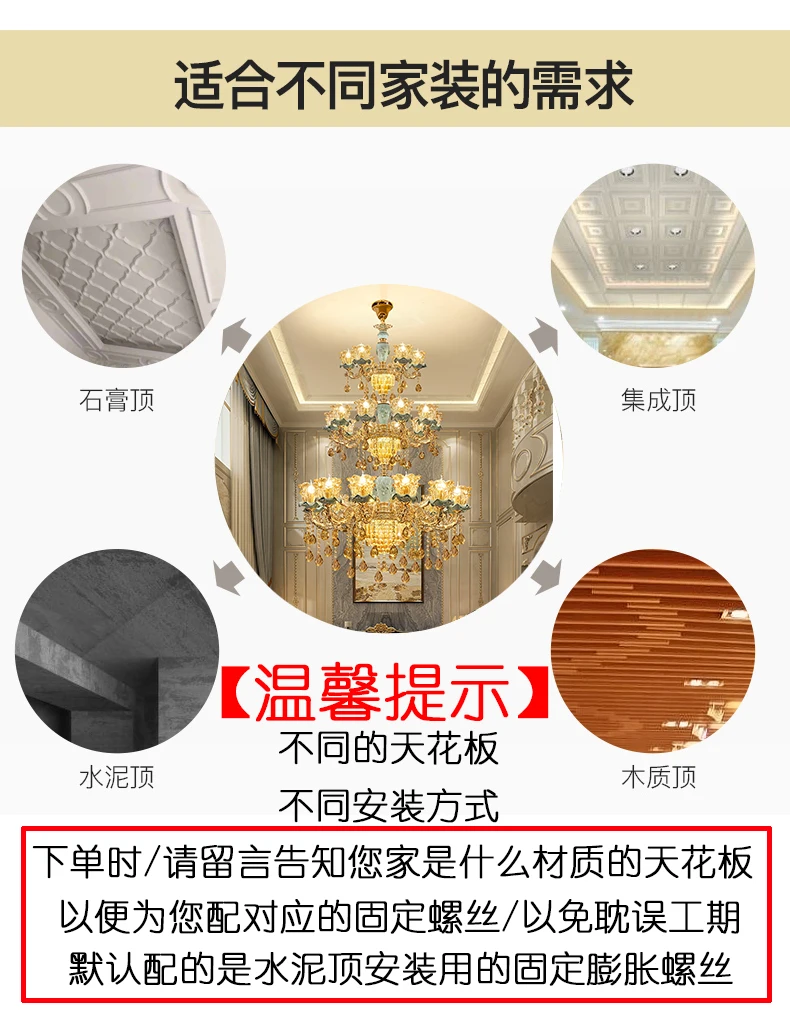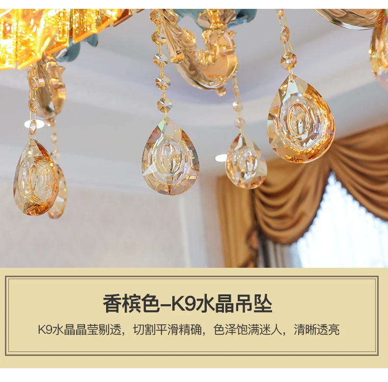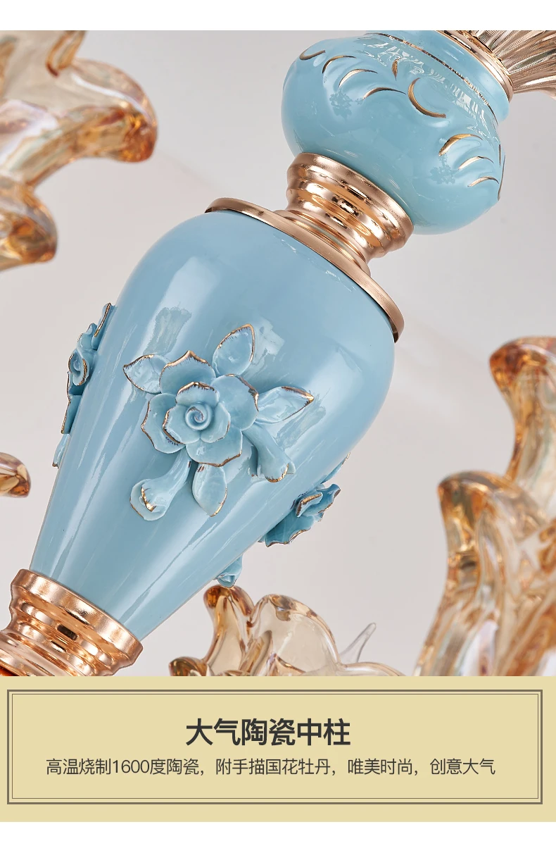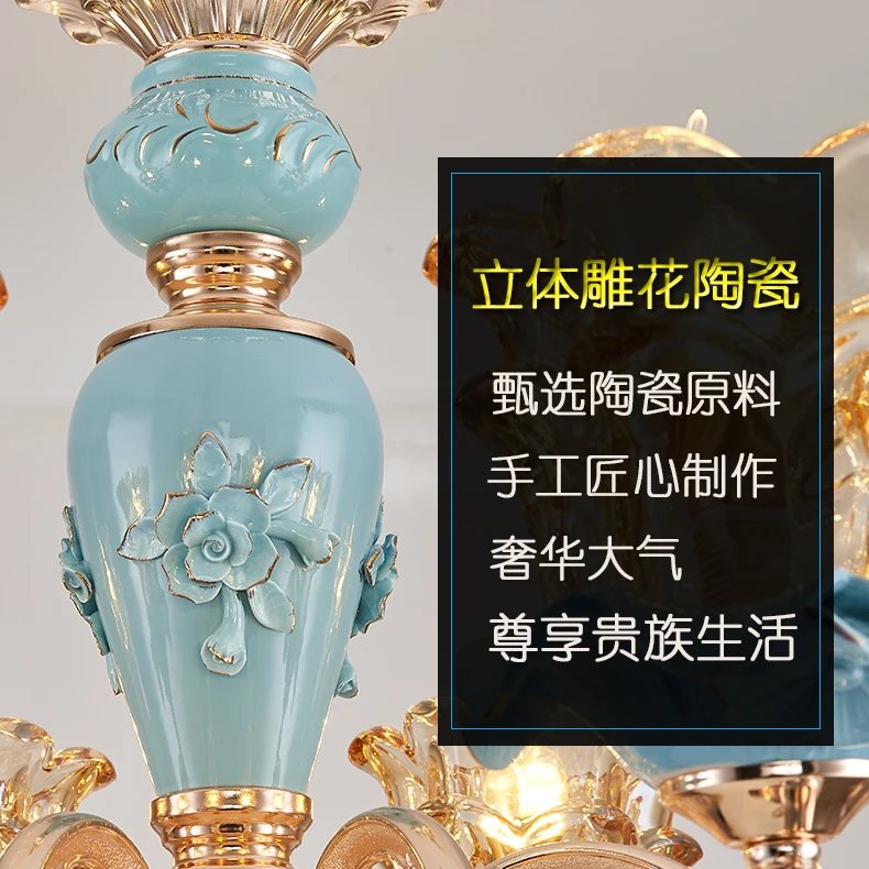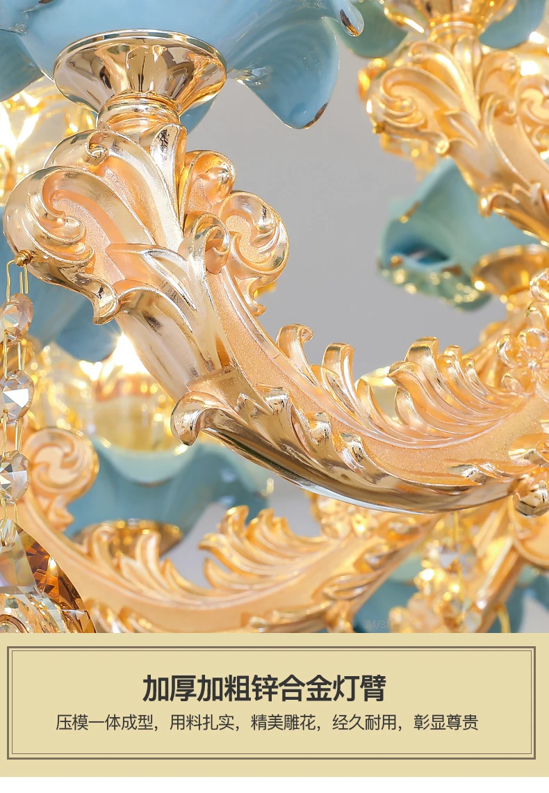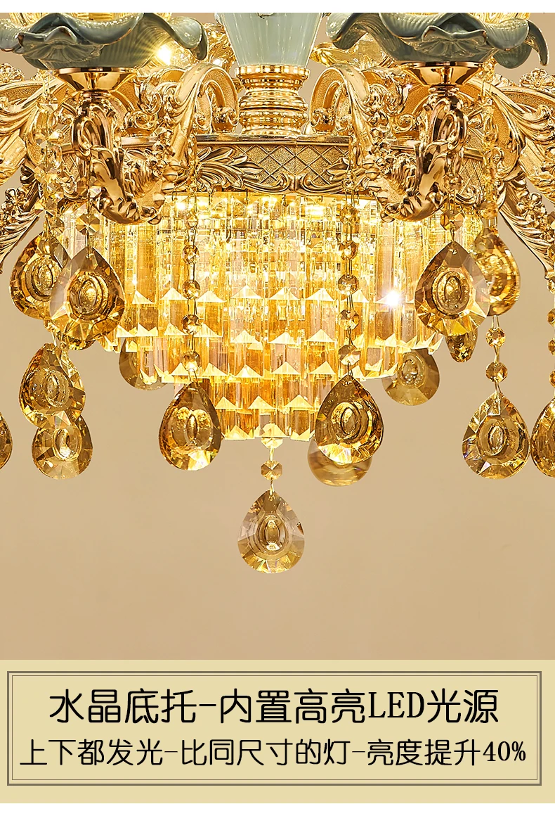 Chandelier European-Style Crystal Lamp Ceramic Three-Layer Living Room and Hotel Staircase Duplex Villa Lamps