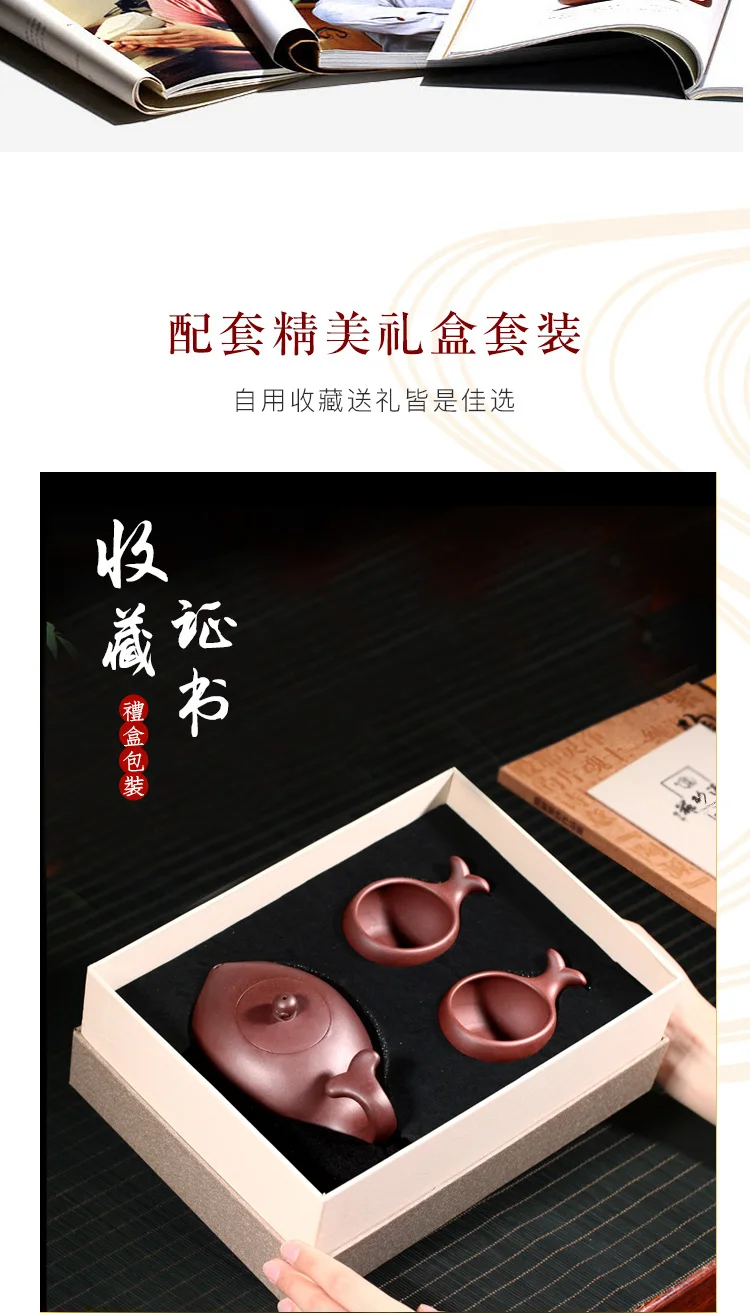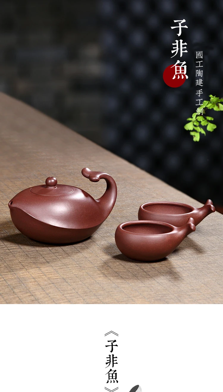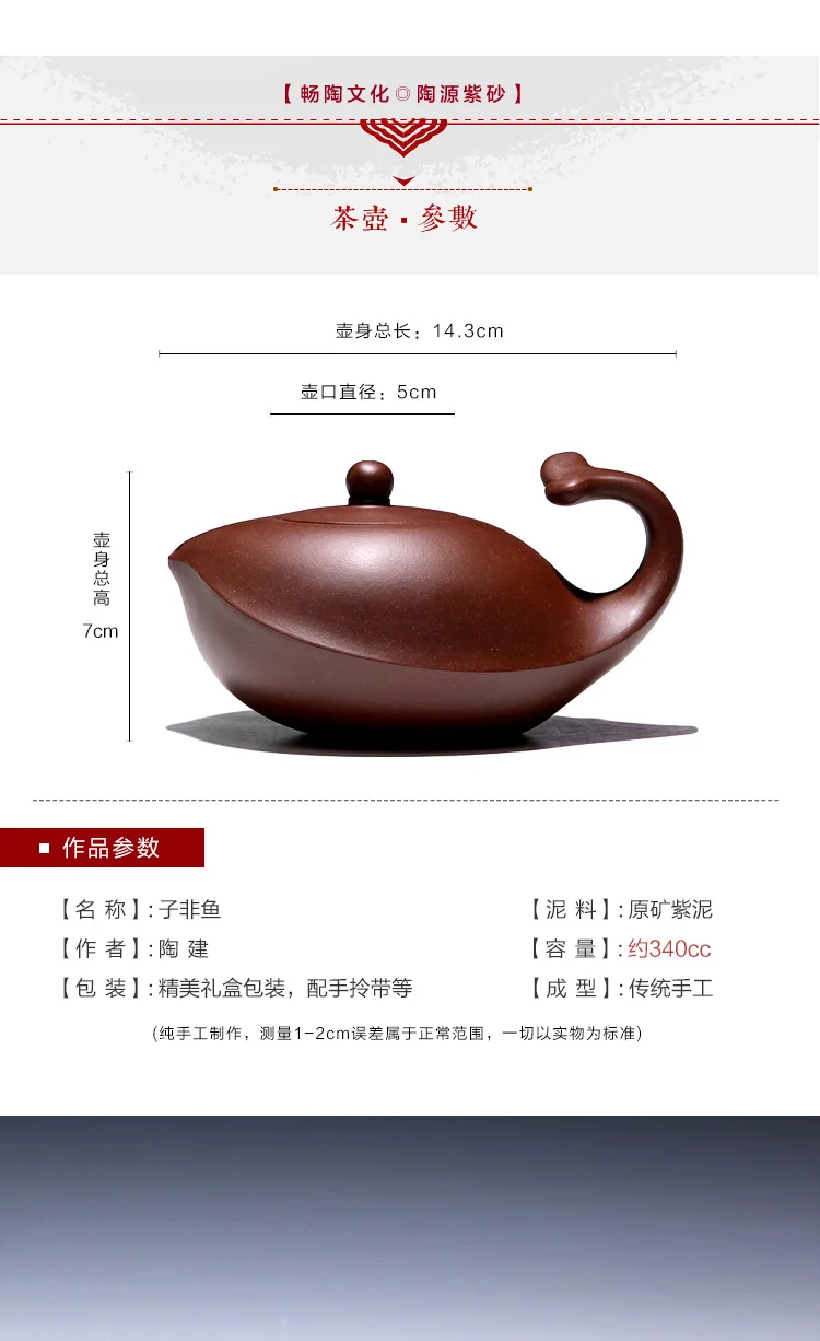 【 Changtao 】 National Ceramic Architecture Works: Yixing Handmade Tea Pot, Purple Clay Pot Set, Non Fish 340cc