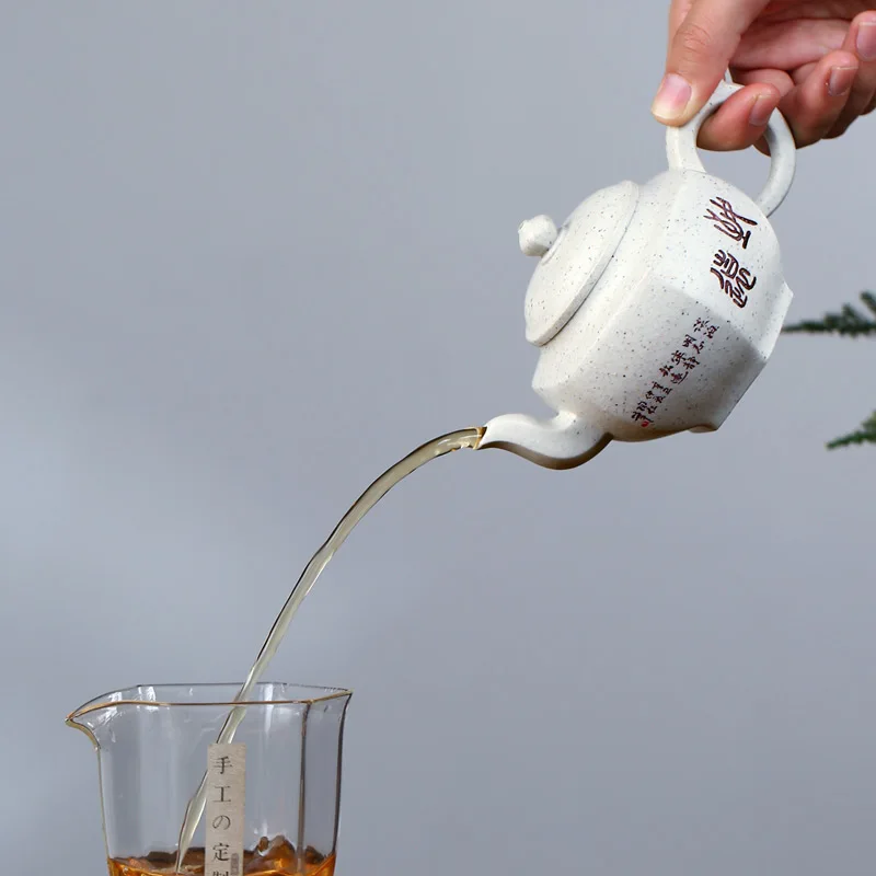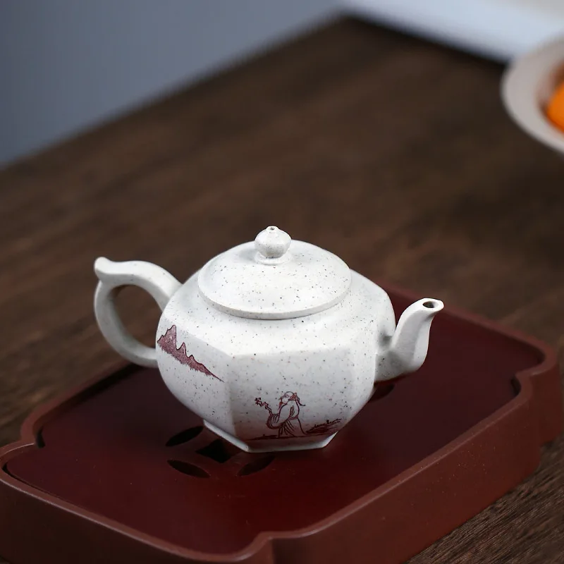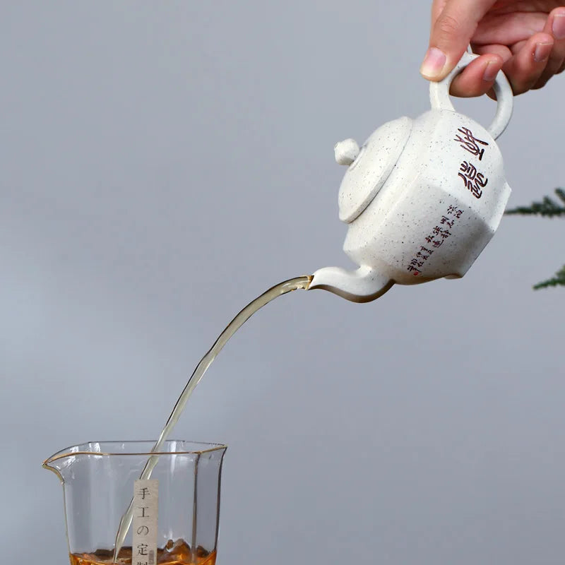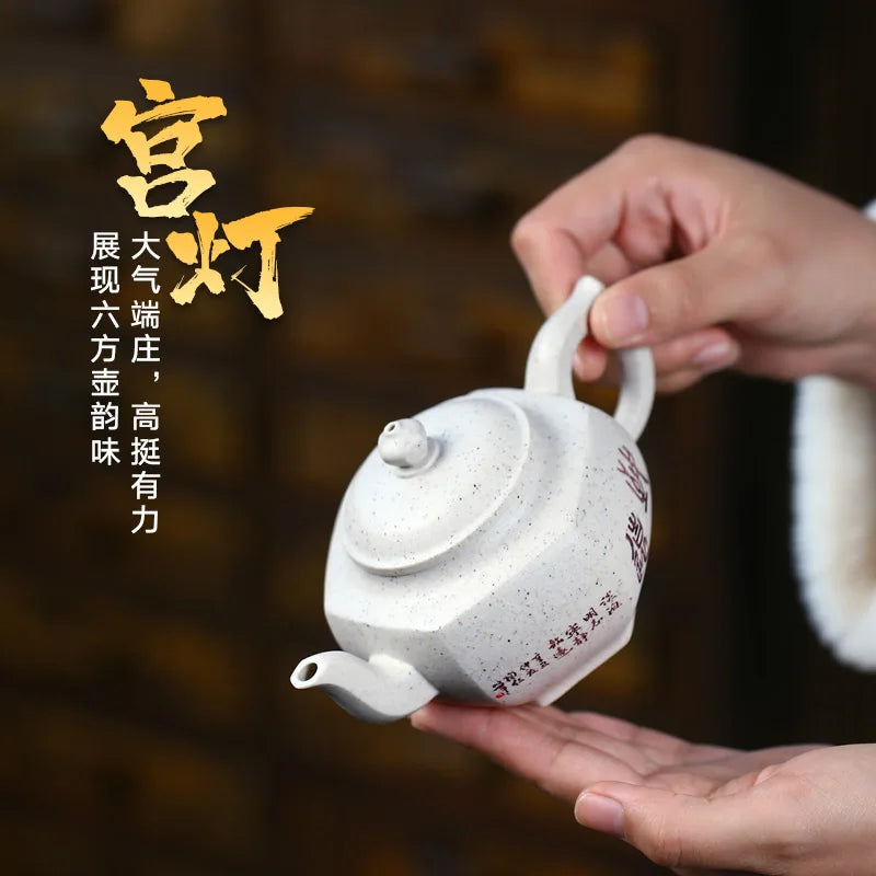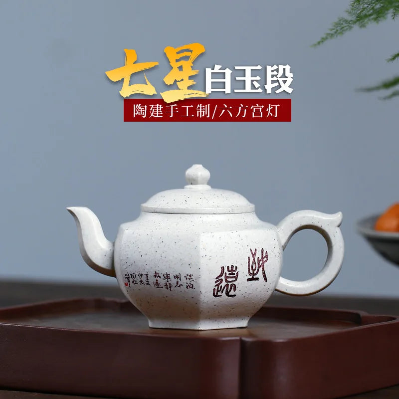 【 Changtao 】 Yixing Famous Master Tao Jianquan Handmade Purple Clay Pot Single Seven Star White Jade Section Six Square