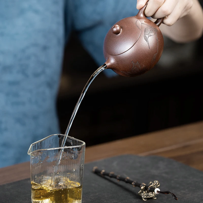 Changtao: Yixing Original Mine Purple Clay Pot, Li Jianjun Handmade Gift, Engraved Xishi 160cc