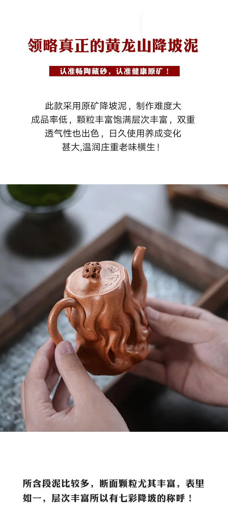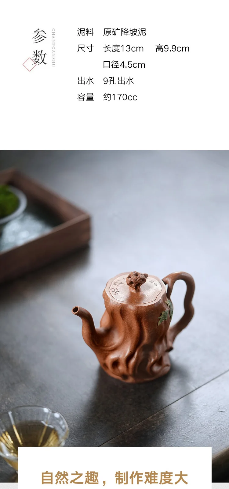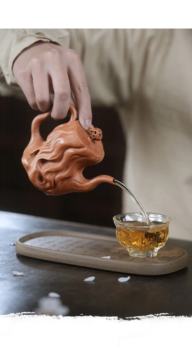 【 Changtao 】 Yixing Original Mine Purple Clay Pot Tea High End Handmade Ningyun Yellow Descending Slope Engraving Tree Stake