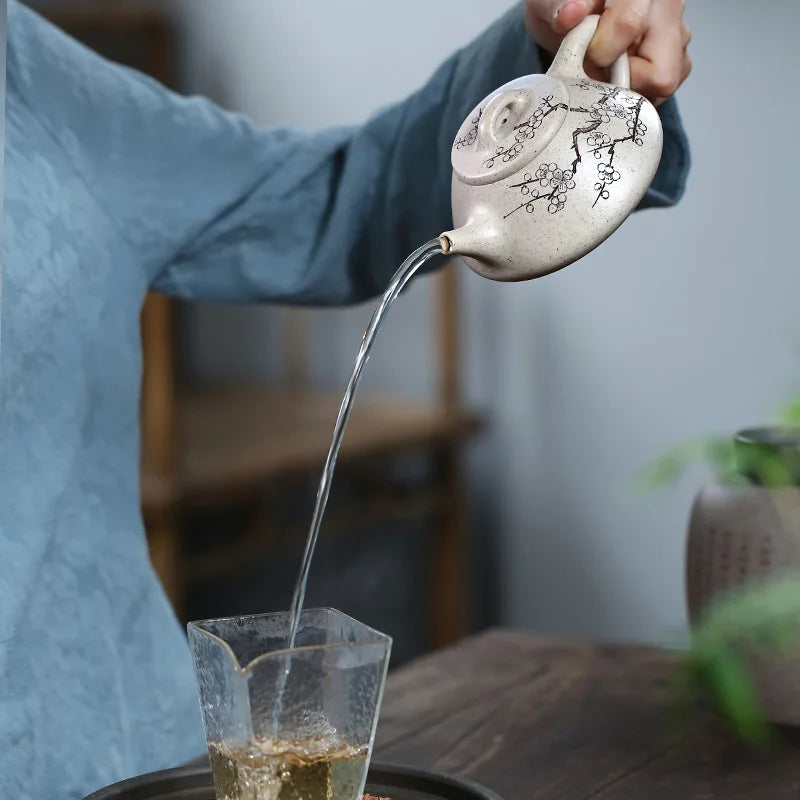 【 Changtao 】 Yixing Raw Mine Purple Clay Pot Pot, Shunqing, Fully Handmade Seven Star White Jade Section Plum Blossom Stone