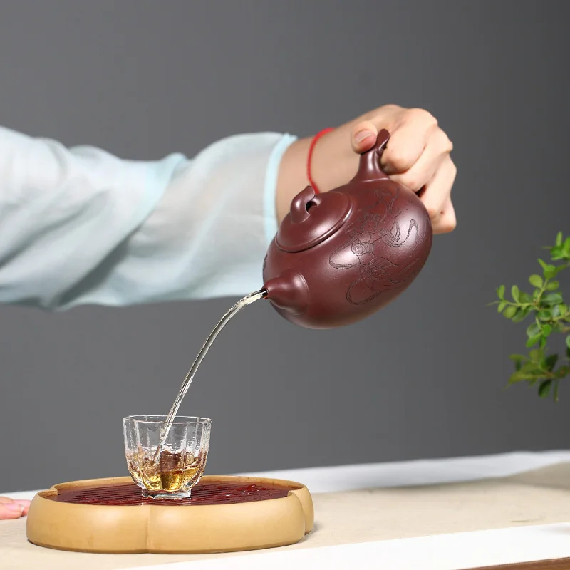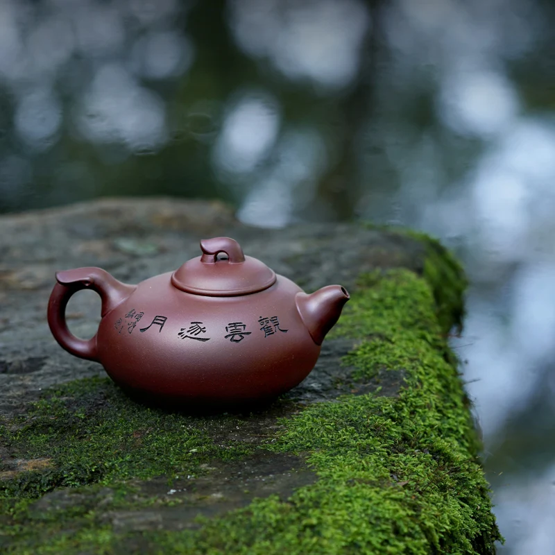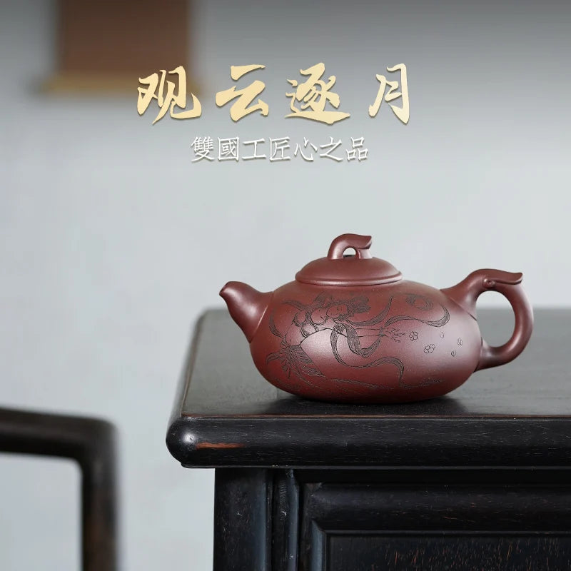 【 Changtao 】 Yixing Tao Jianquan Handmade Purple Clay Pot Engraving With Chu Guofeng, Guanyun, Monthly 400cc