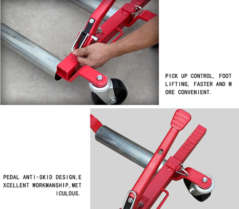 4.Foot-operated hydraulic jack squeezes the support legs together, smoothly and safely lifting the tire off the ground in seconds.