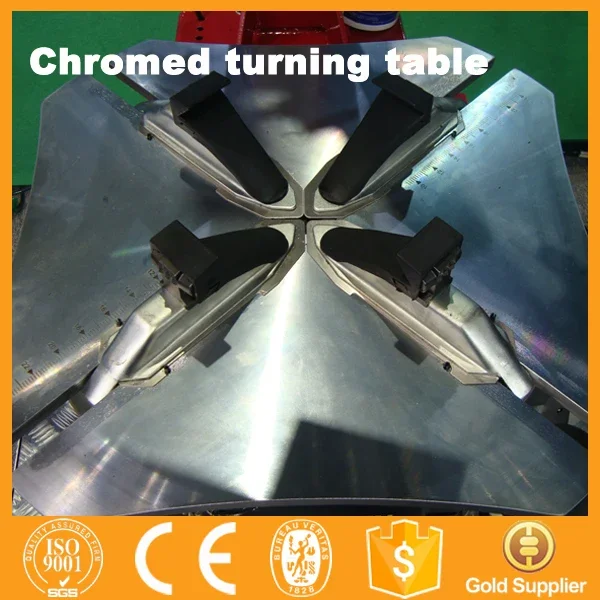 2, Self-centering four-jaw turntable controlled via two clamping cylinders for correct clamping of the wheel;