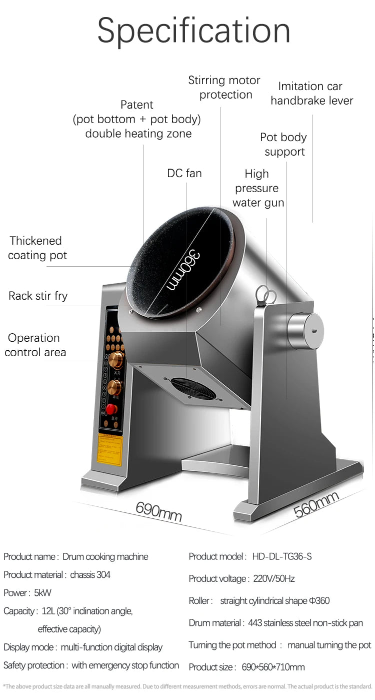 *With simple knobs and buttons, easy to operate *Labor saving, one person can operate multiple devices *Teflon-coating pot and iron pot can be selected, suitable for various types of cooking *Fast heating rate, restore the taste of the chef cooking *Gas or electrical heating can be optional TGD30 has 8 timing settings, which can meet the needs of daily use of cooking machines in restaurants. It is with knobs to control power and speed. The angle of the pot can be adjusted by pressing the button to select cooking and serving, which is effortless and convenient to operate. It is great for restaurants with simple recipes.