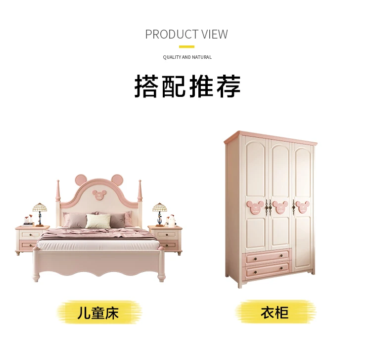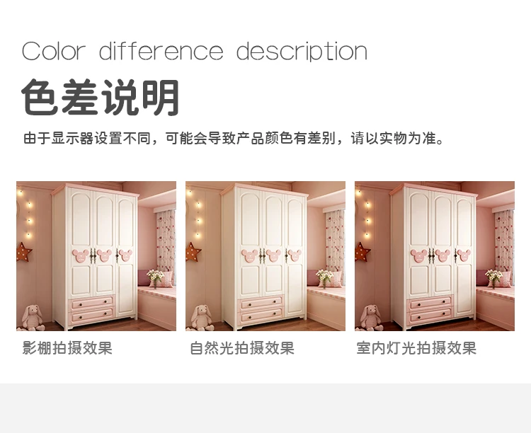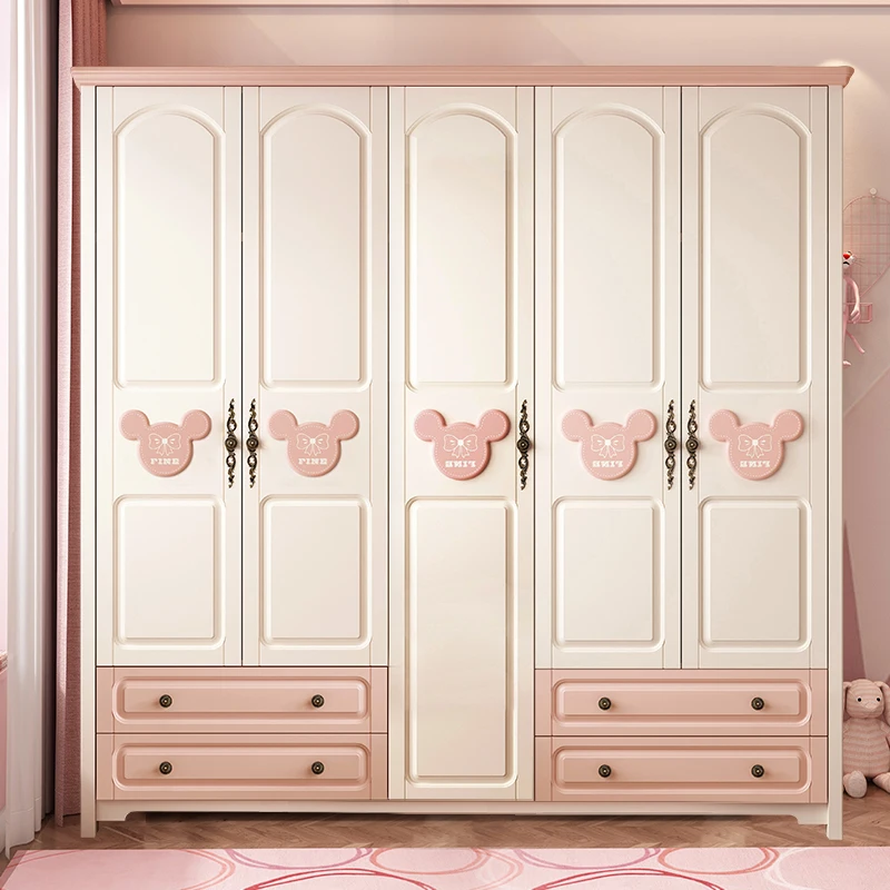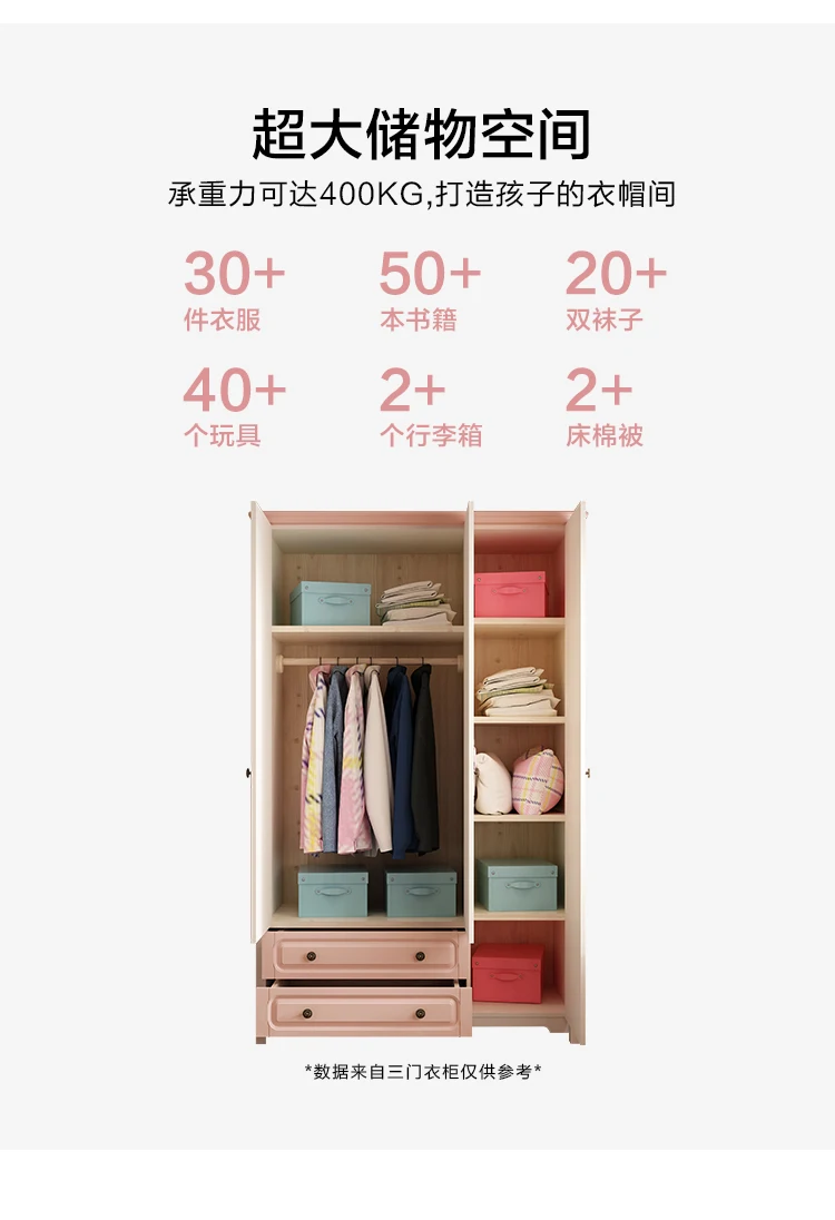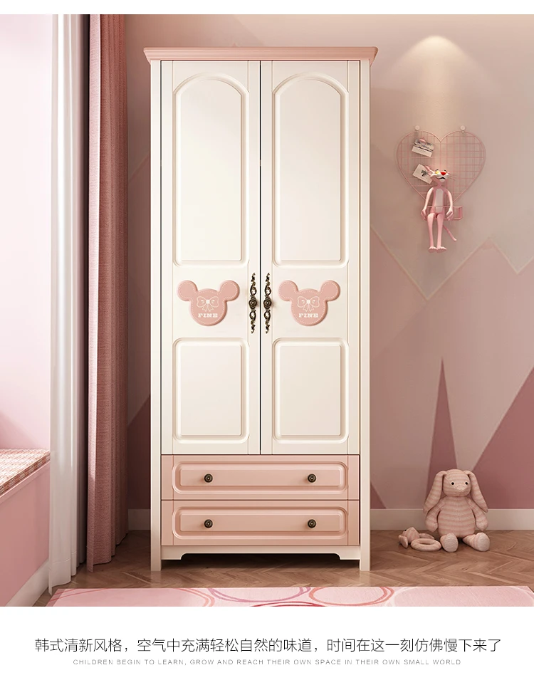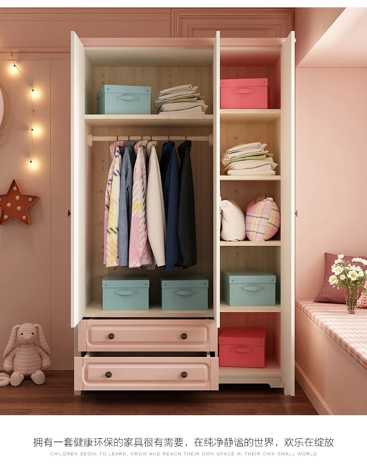 MMOOKA Children's Wardrobe Home Bedroom Cabinet Wood Foot Two Doors Three Doors Vertical Hinged Door Girls Pink