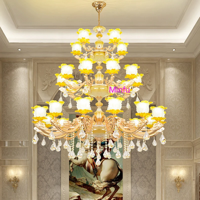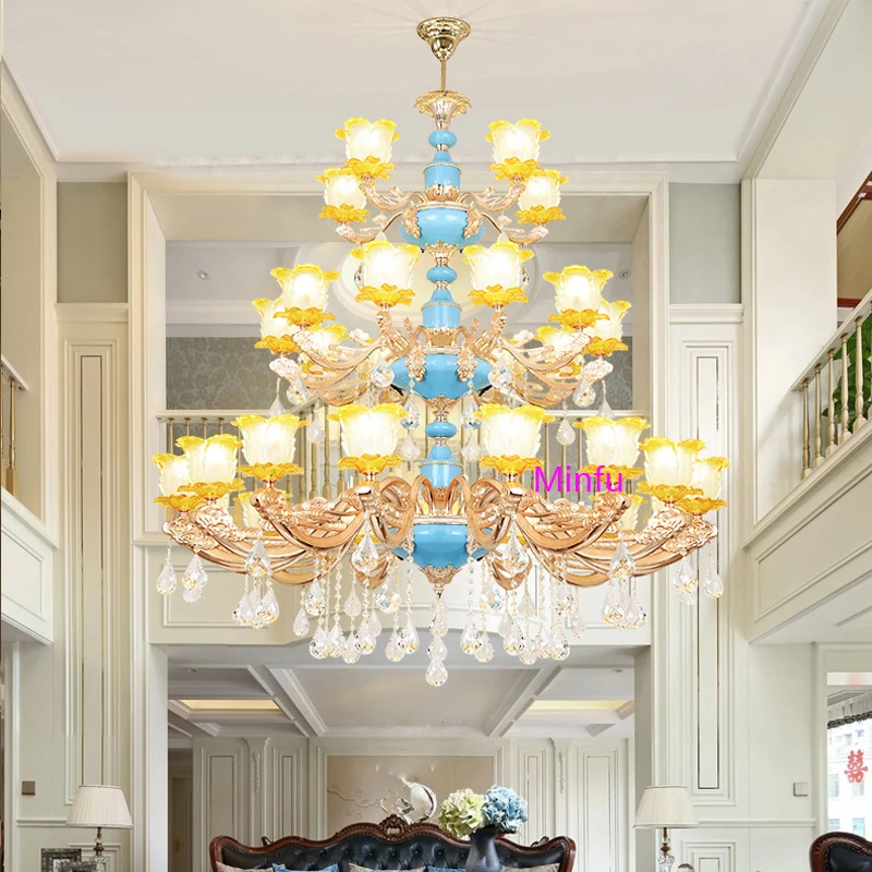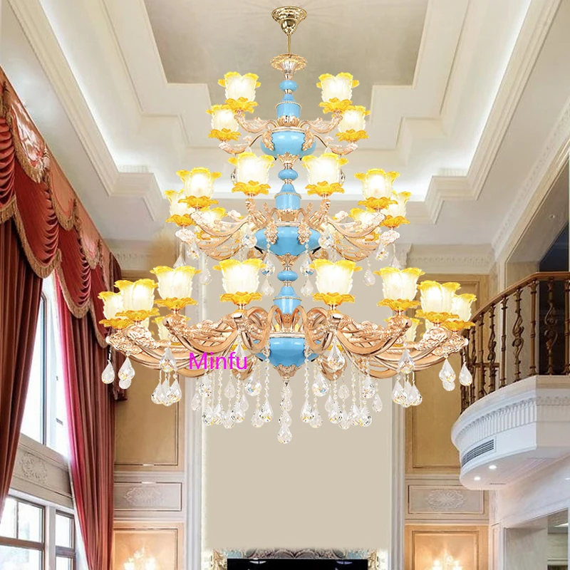 Chinese Ceramic Chandelier Villa hotel Crystal Lamps European Restaurant Crystal Chandelier Villa Complex Building Crystal Light