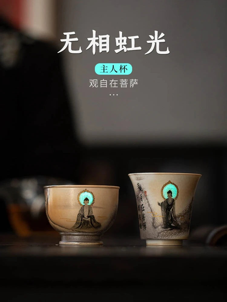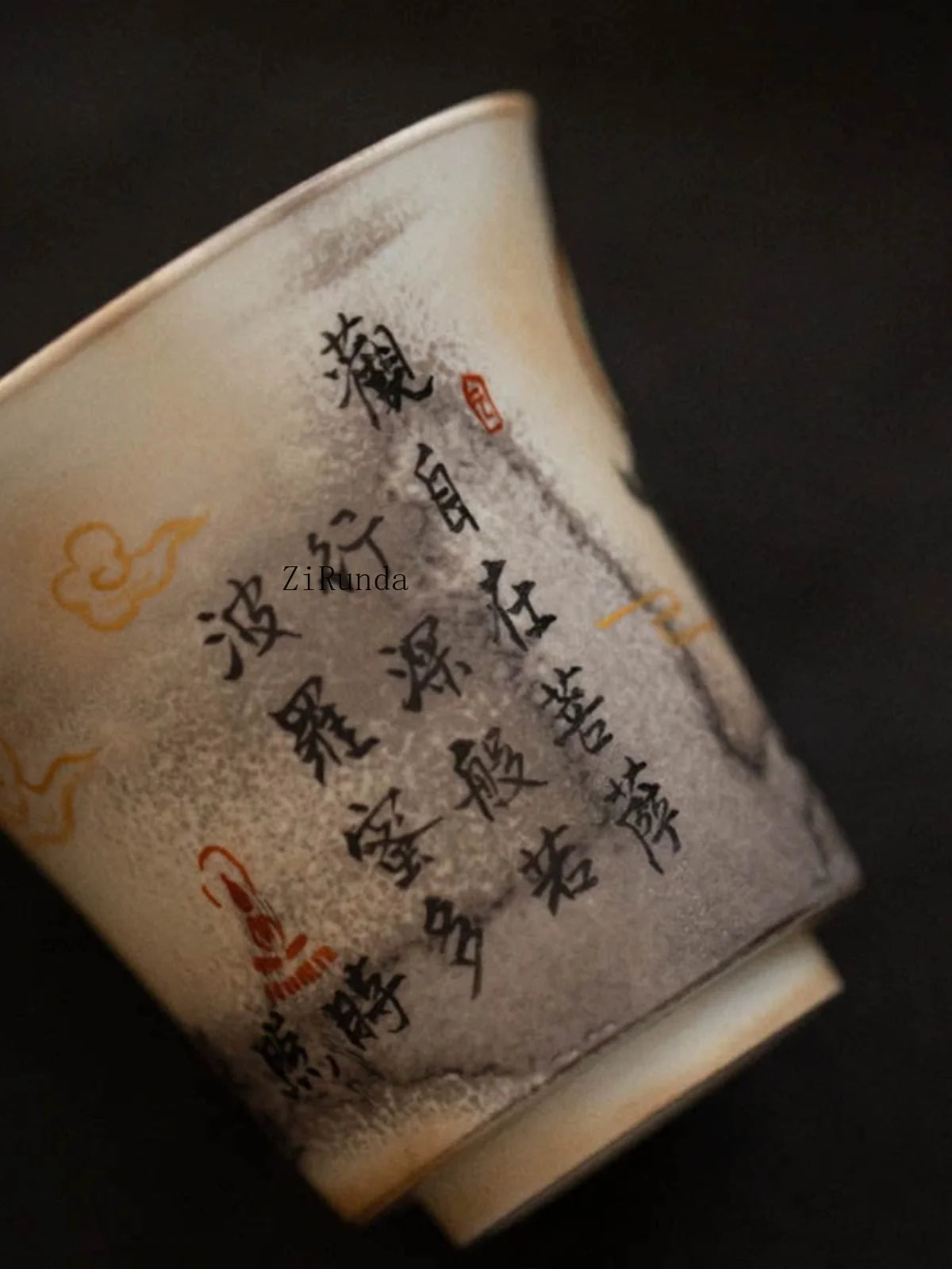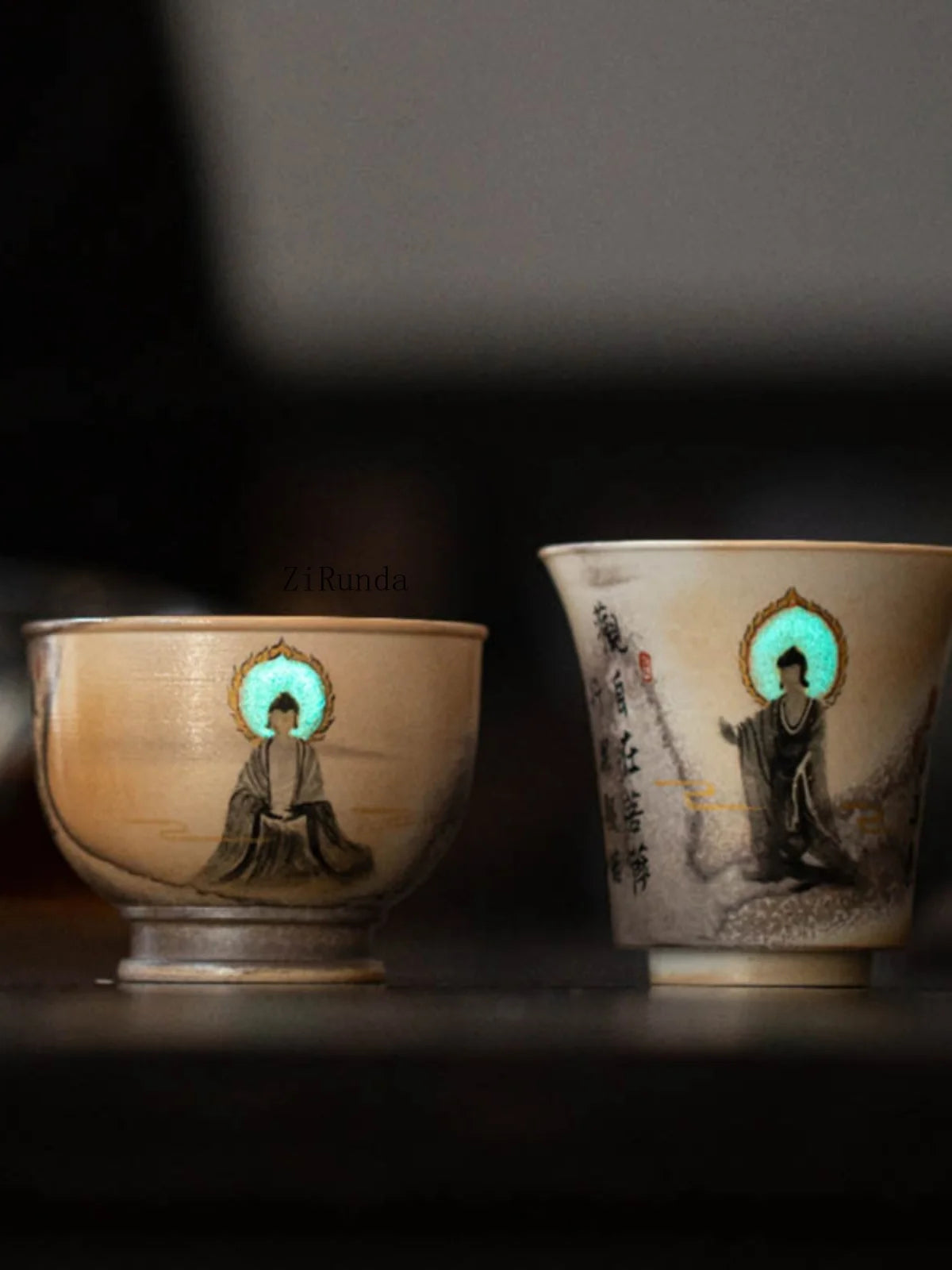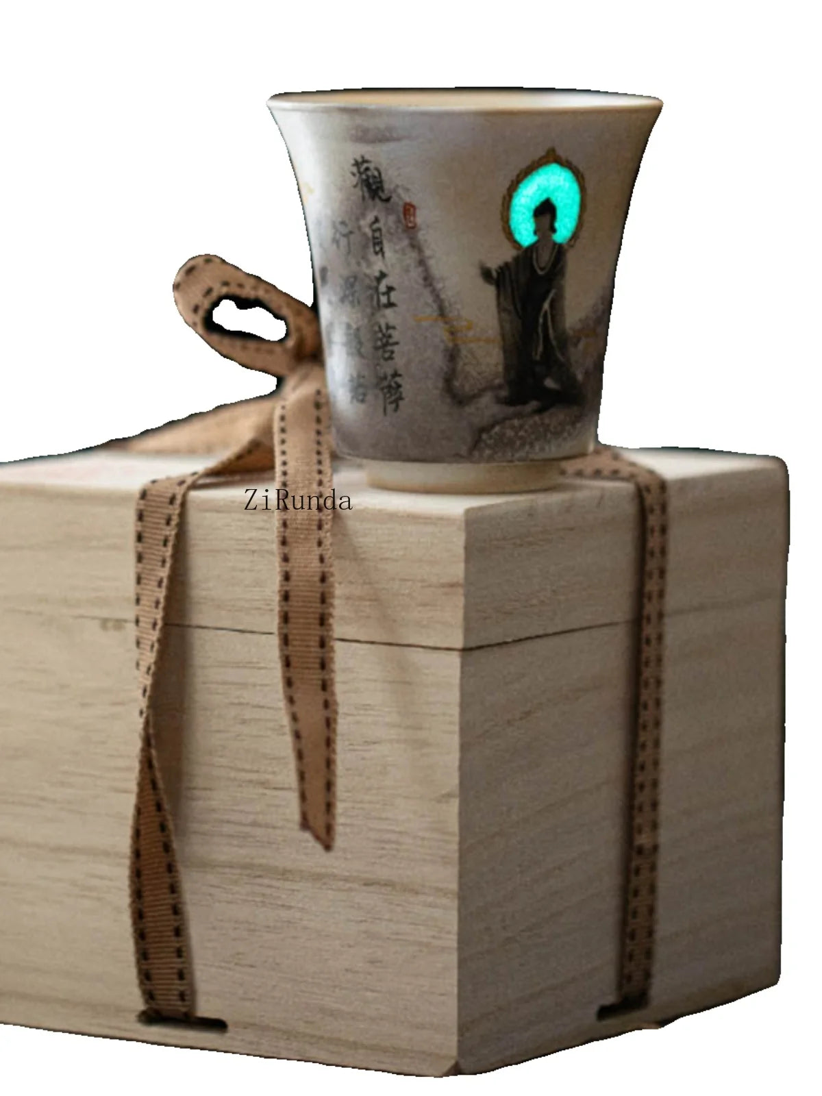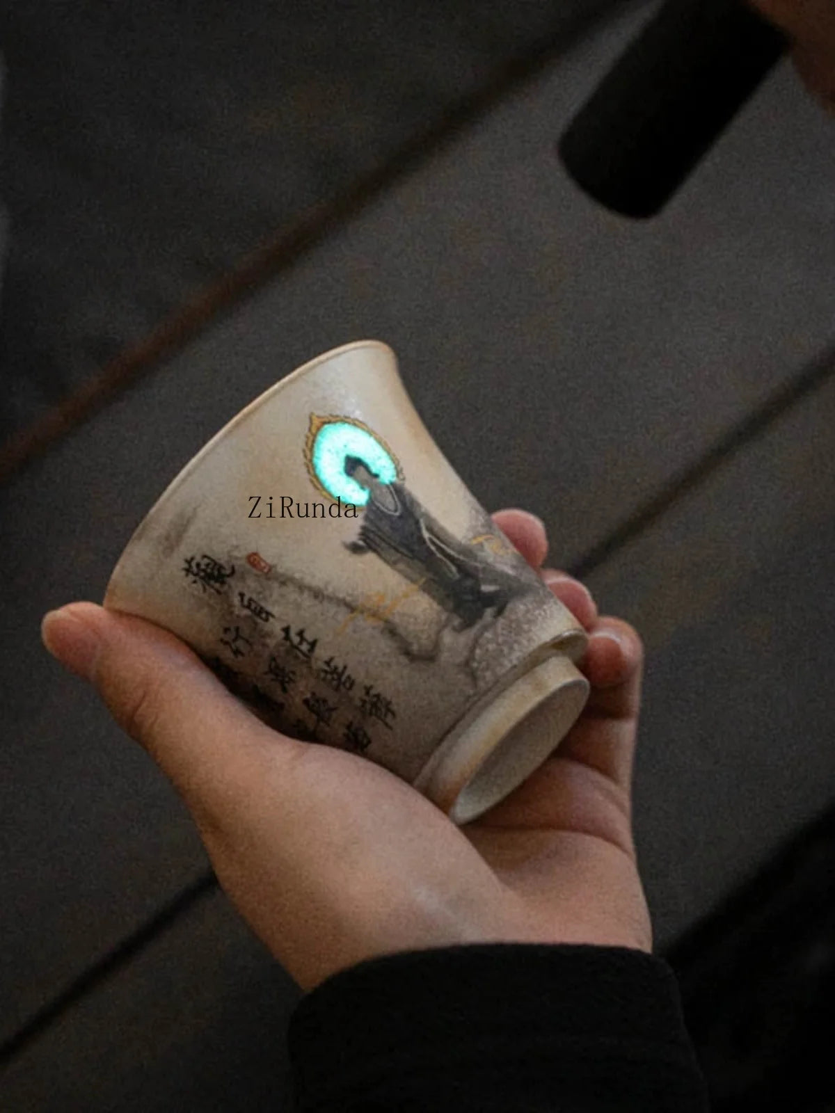 *Chinese Firewood Burning Hand-painted Dunhuang Cup Rock Mine Master Cup Luminous Kung Fu Teacup Tea Set Accessories