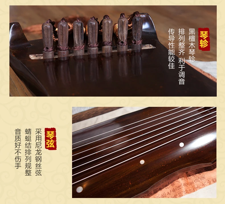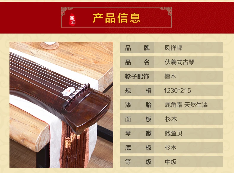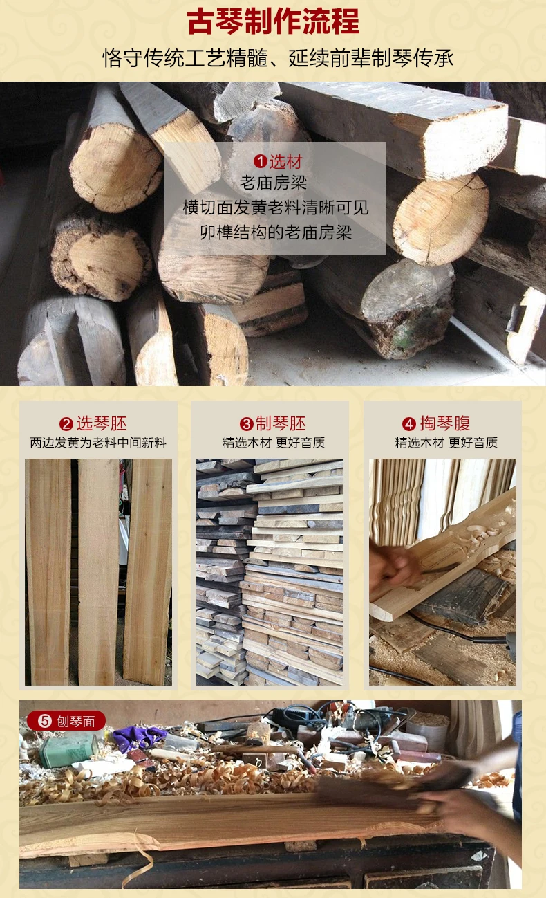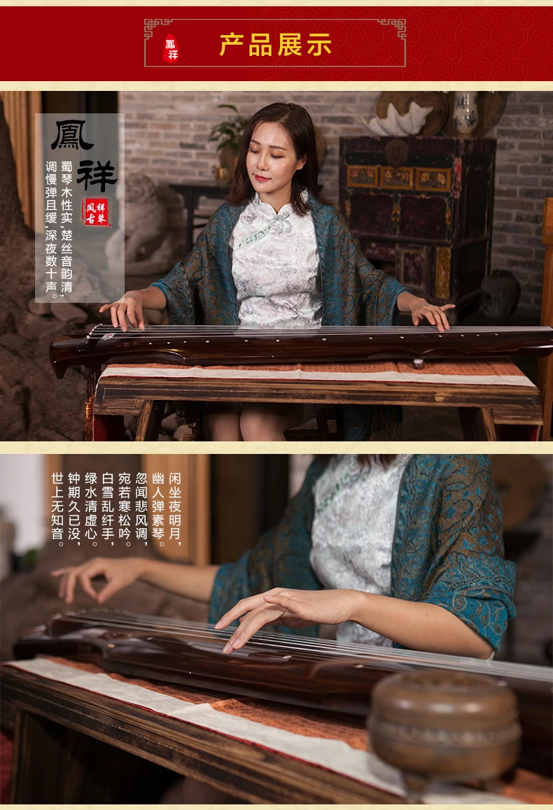 Chinese Guqin Fuxi-type Old Fir Solid Wood Guqin Beginner High-end Performance Level 7 Strings Ancient Zither with Accessories