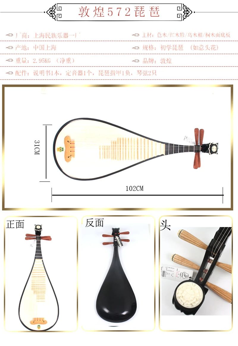 Chinese lute Pipa Dunhuang brand 572 National String Instrument Pi pa Adult playing 102cm pipa platane wood with pipa bag