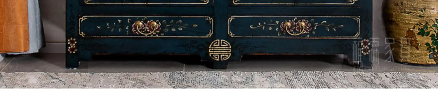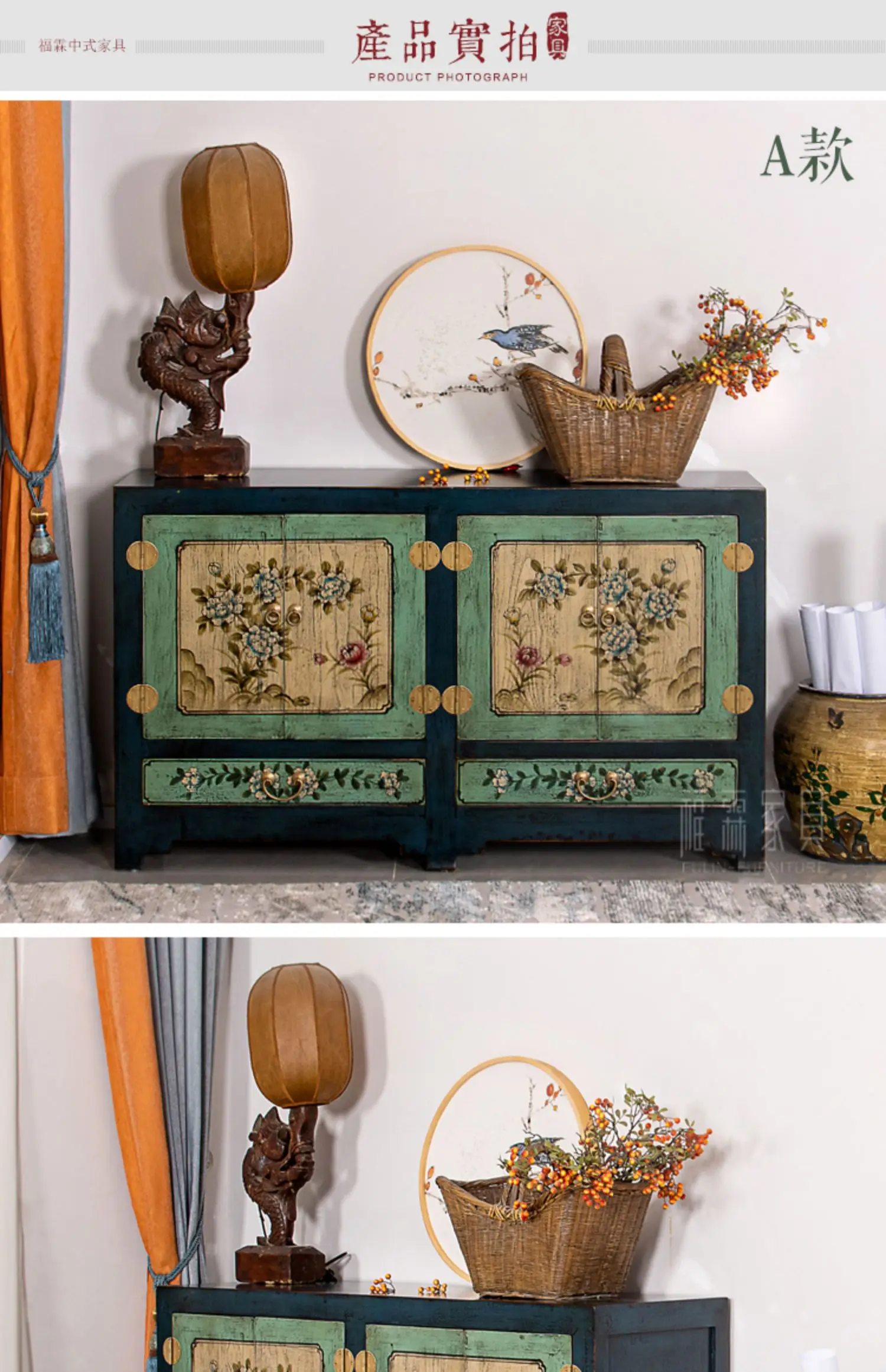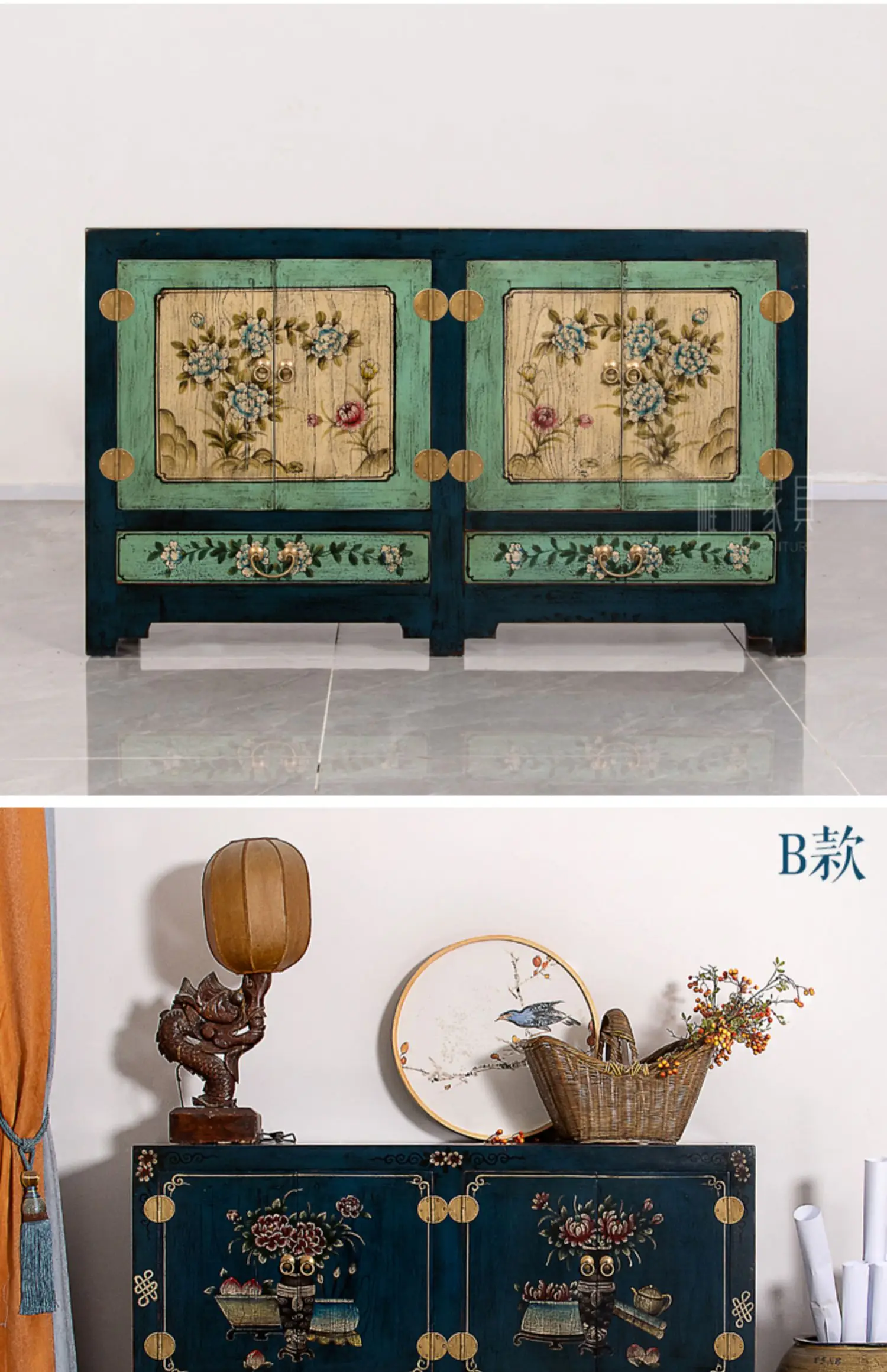 MMOOKA Chinese Painted Furniture Solid Wood Locker Vintage Cabinet Distressed New Chinese Style Side Cabinet