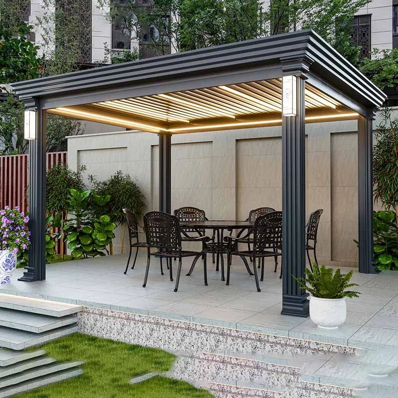 Chinese style louver flipped pavilion, outdoor courtyard villa, outdoor sunshade, rain shelter, outdoor electric aluminum alloy