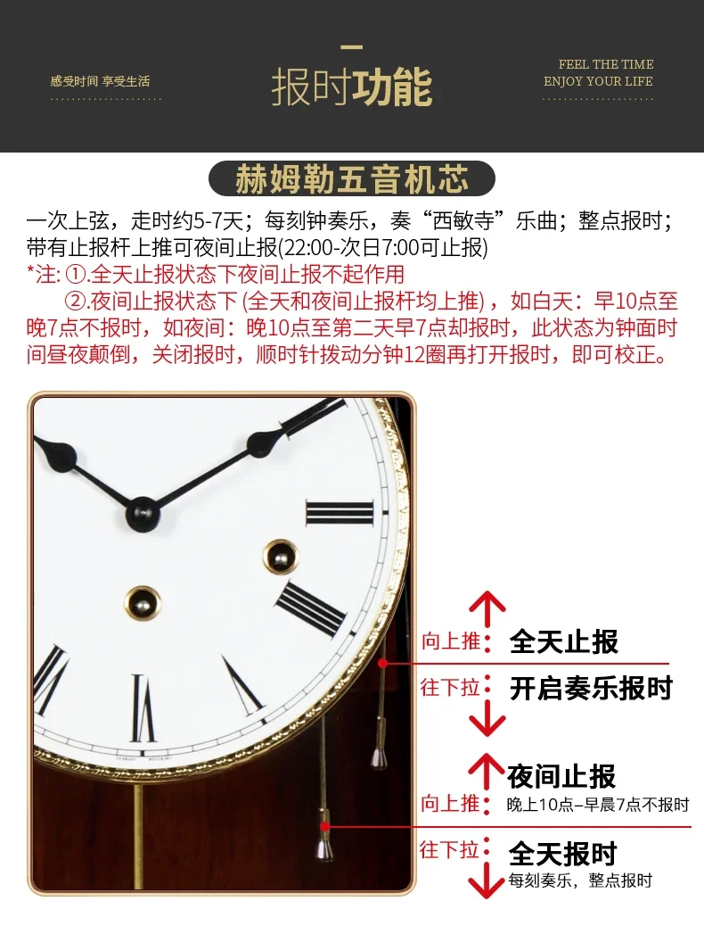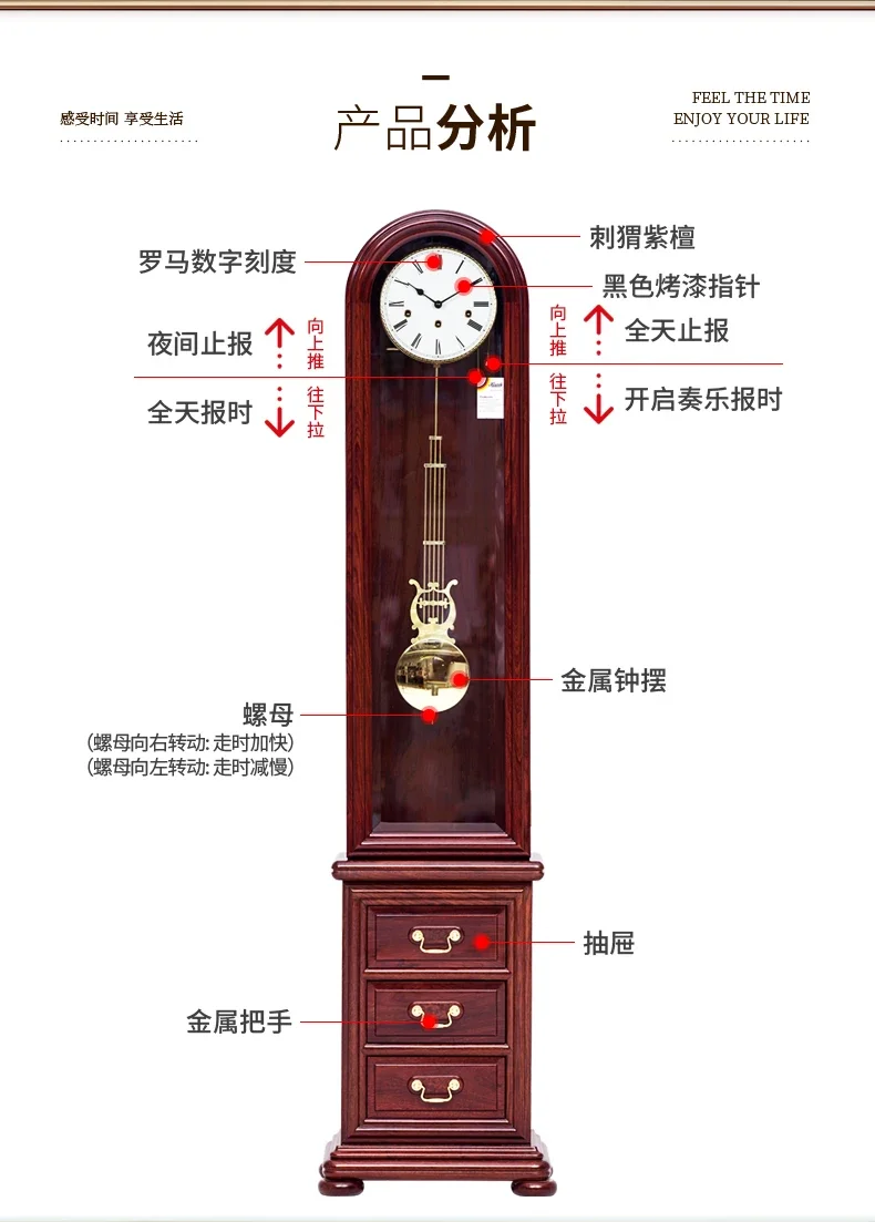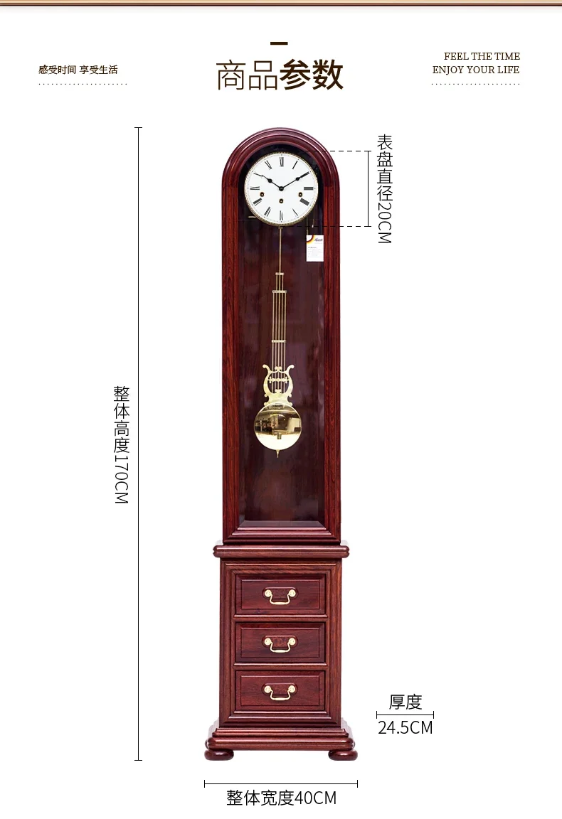 Chinese Style the Grandfather Clock Living Room Large Clock Retro Hermle Movement Mechanical Floor Clock