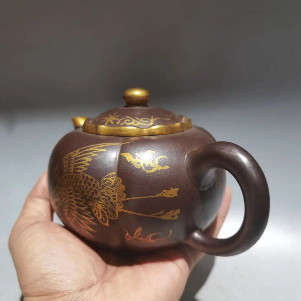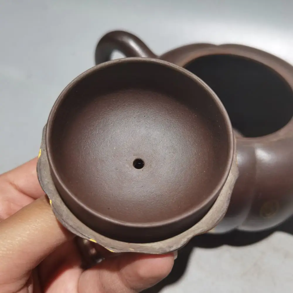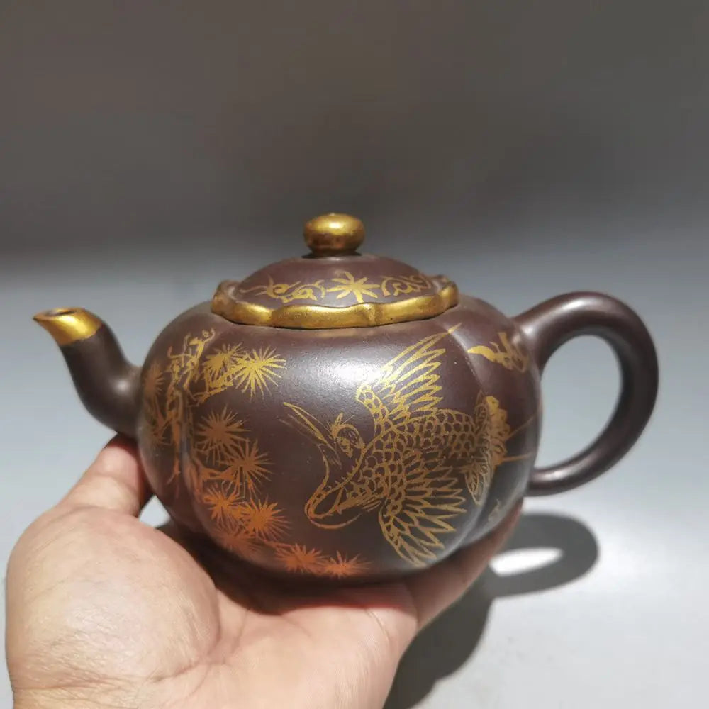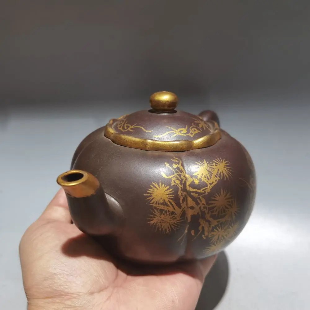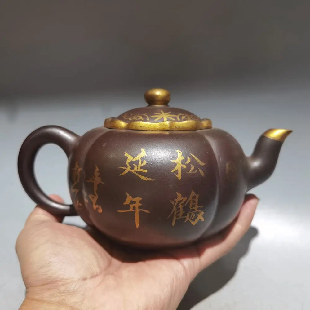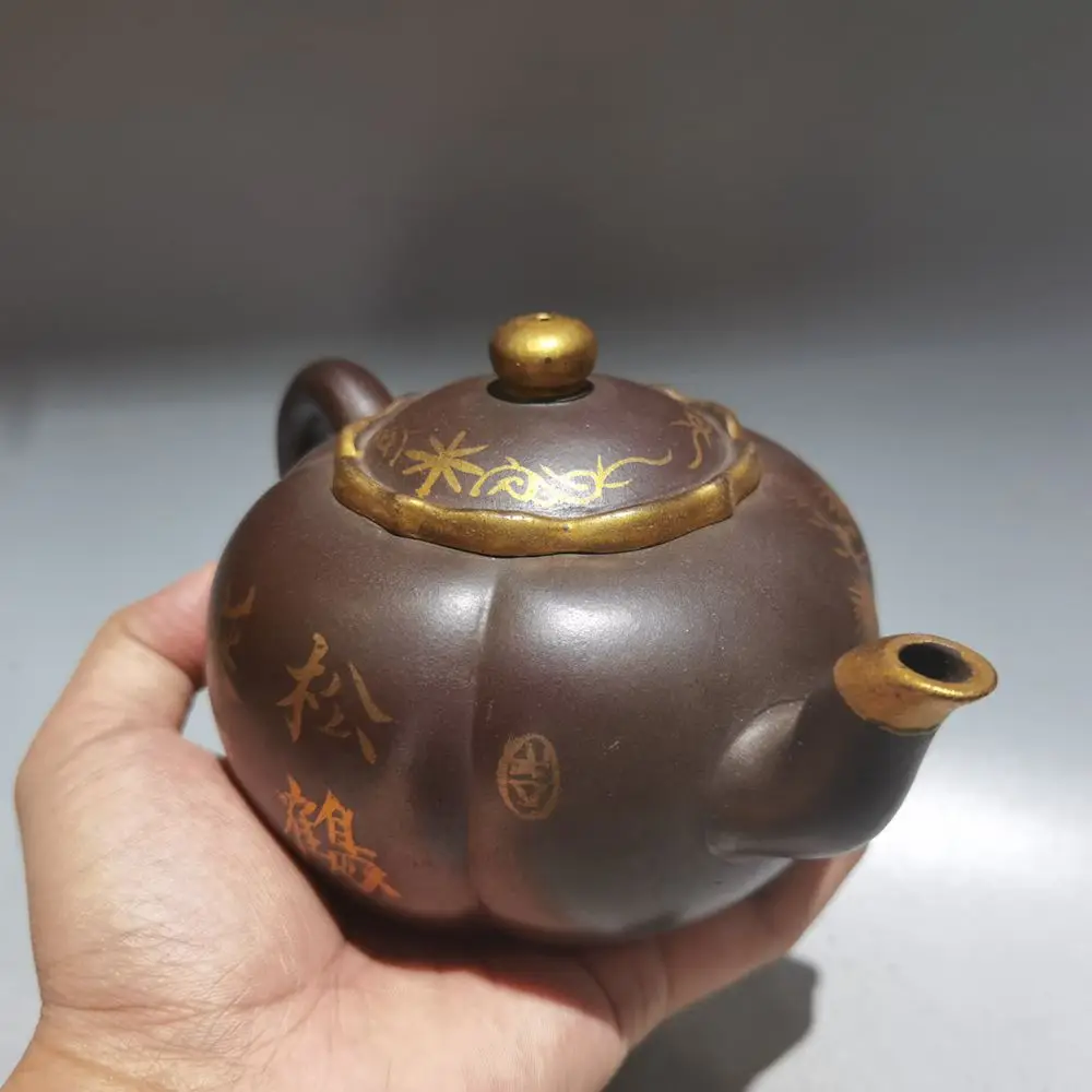 Chinese Yixing Zisha Clay Teapot Golden painted persimmon round Pot by Emperor Qianlong 420ml