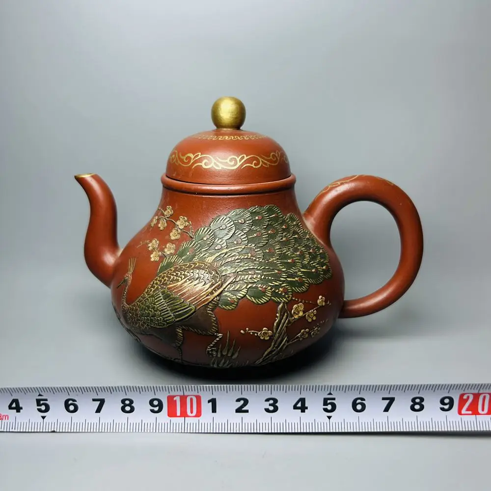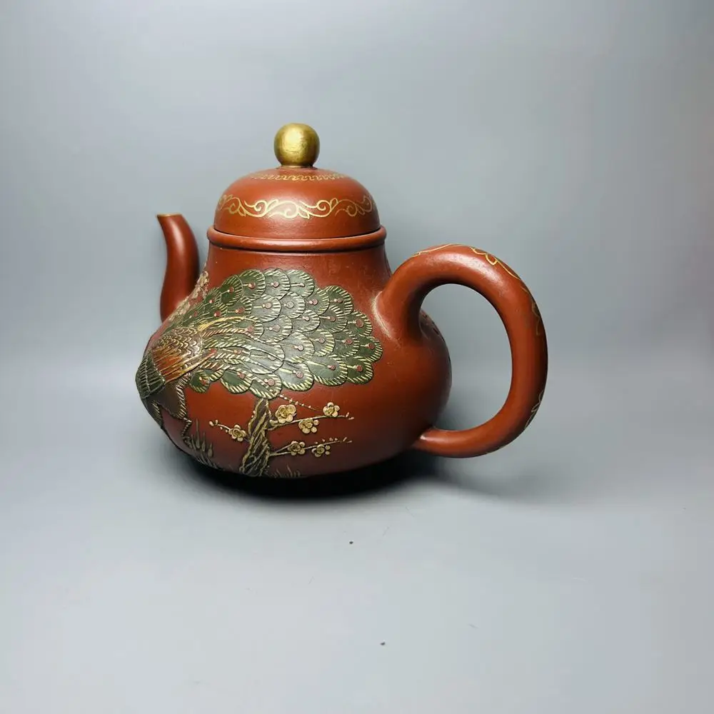 Chinese Yixing Zisha Clay Teapot hand painted phoenix gilded Pot Emperor Kangxi 500ml