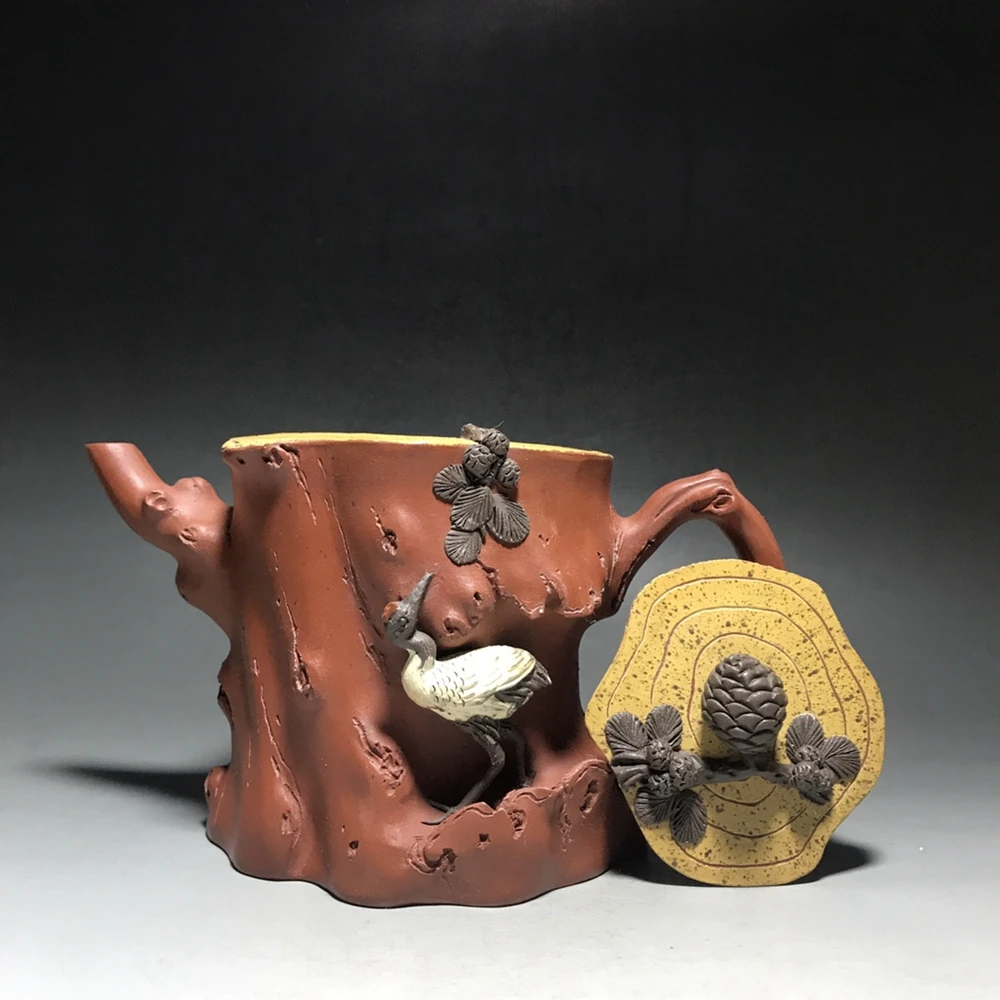 Chinese Yixing Zisha Clay Teapot Pine crane tree stumps Pot Wang Yinxian 550ml
