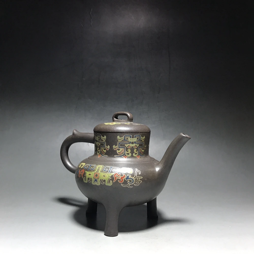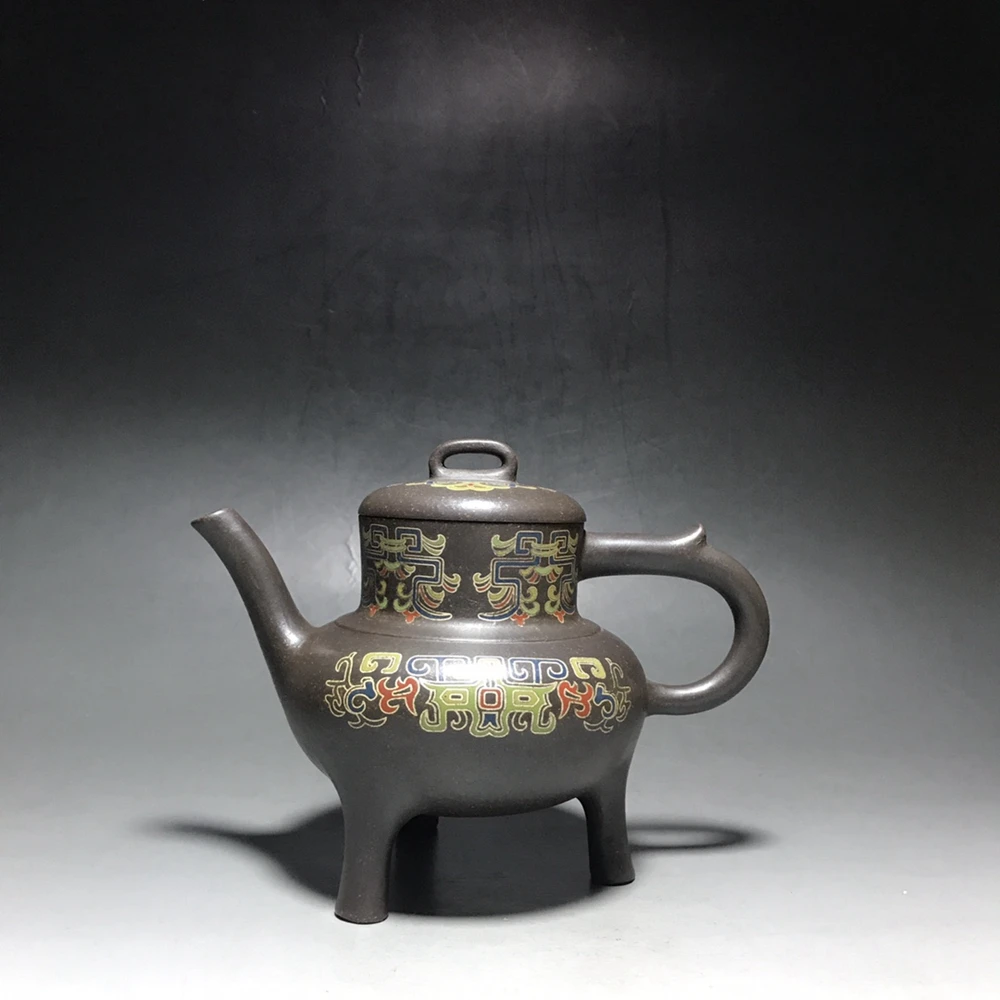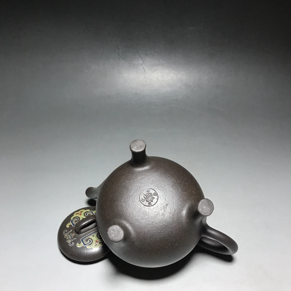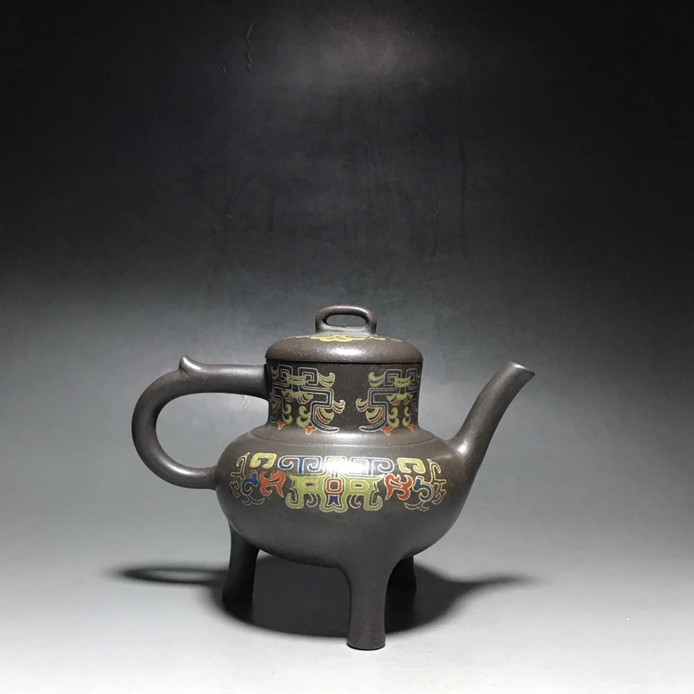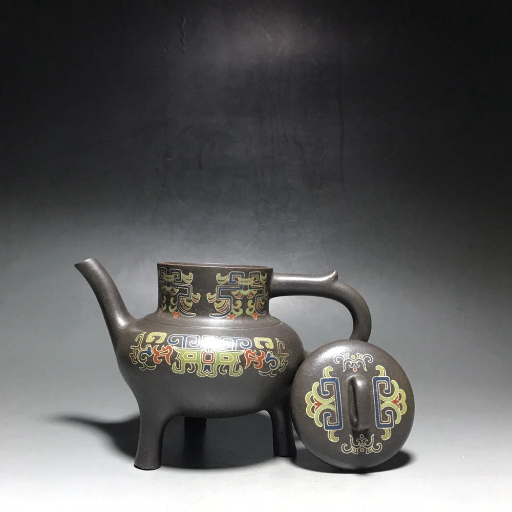 Chinese Yixing Zisha Clay Teapot Silver Silk Tripod Pattern Three legged Pot Jinding trademark 350ml