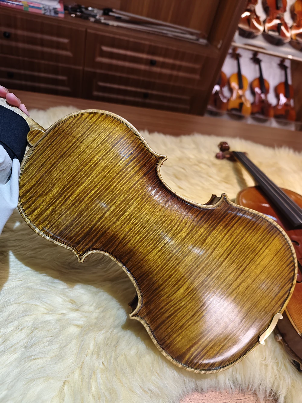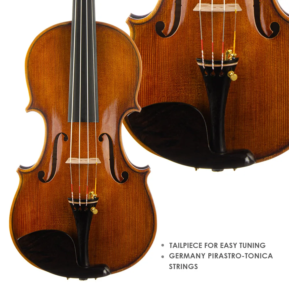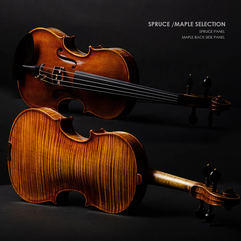 -Purely handmade advanced-grade violin, made of high-quality spruce and flame maple from Sichuan/Yunnan; Upgrade one-piece backplane. Suitable for performance in orchestra and solo stage, recommended for advanced players, conservatory students.