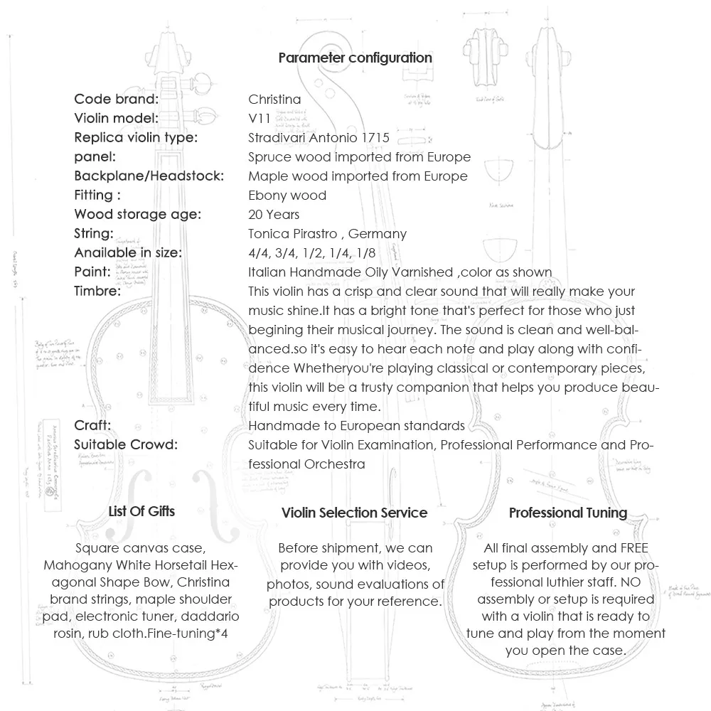 ▶We will fully set up and adjust your violin before sending it out, simply tune and play after received.