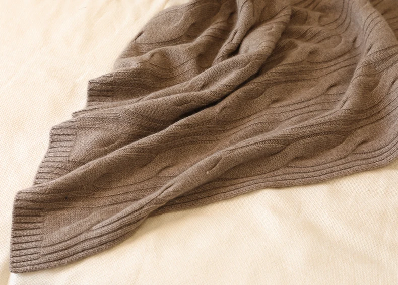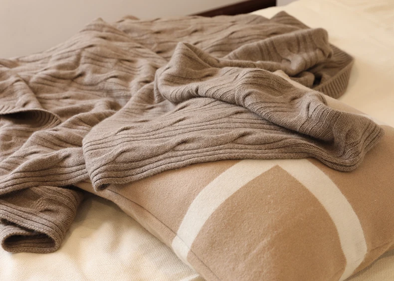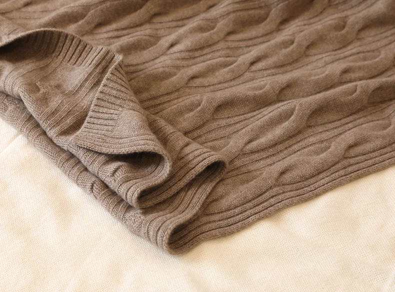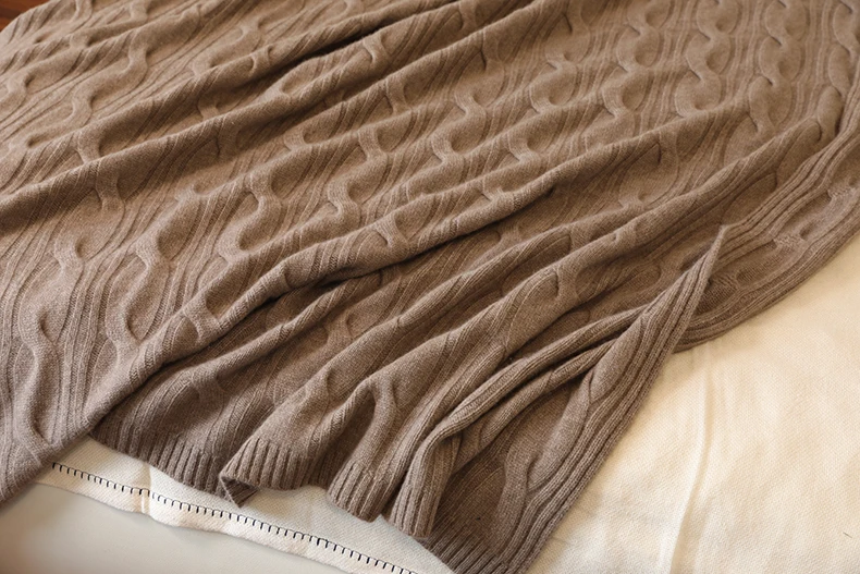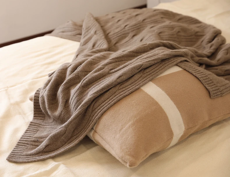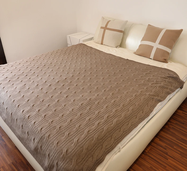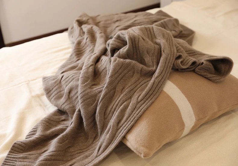 Chunky knit pure cashmere blanket luxury soft korean knitted travel wearable wool throw for winter