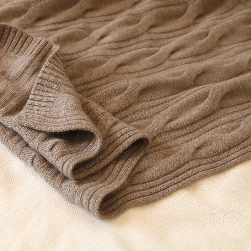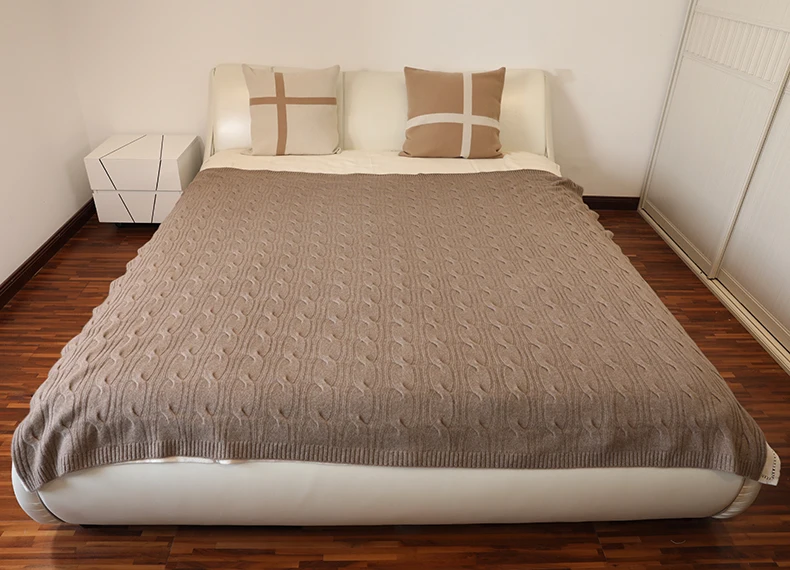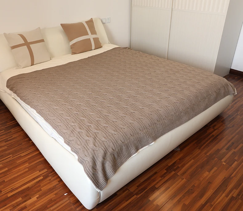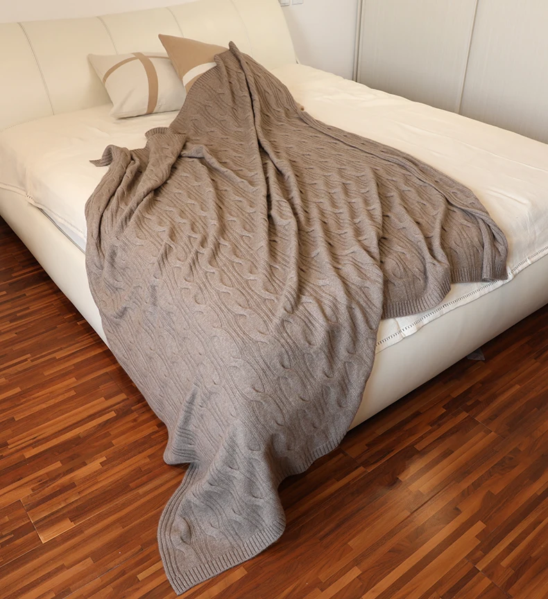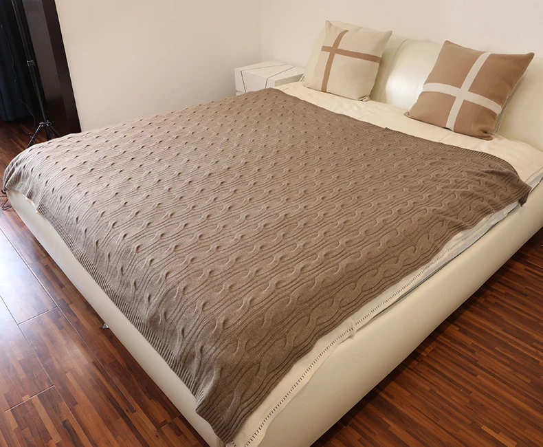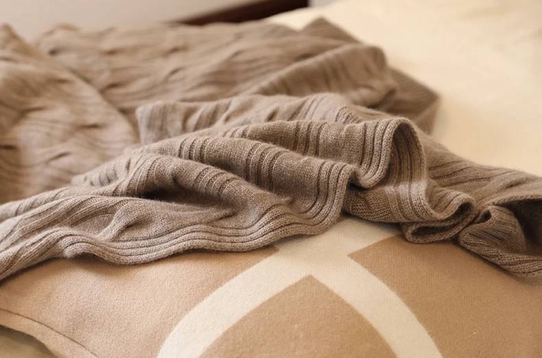 Chunky knit pure cashmere blanket luxury soft korean knitted travel wearable wool throw for winter