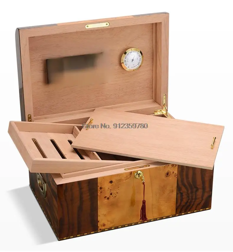 Cigar Box Humidors Cedar Wood Piano Big Capacity Multilayer Moisturizing Box Moisturizing Cigar Case
