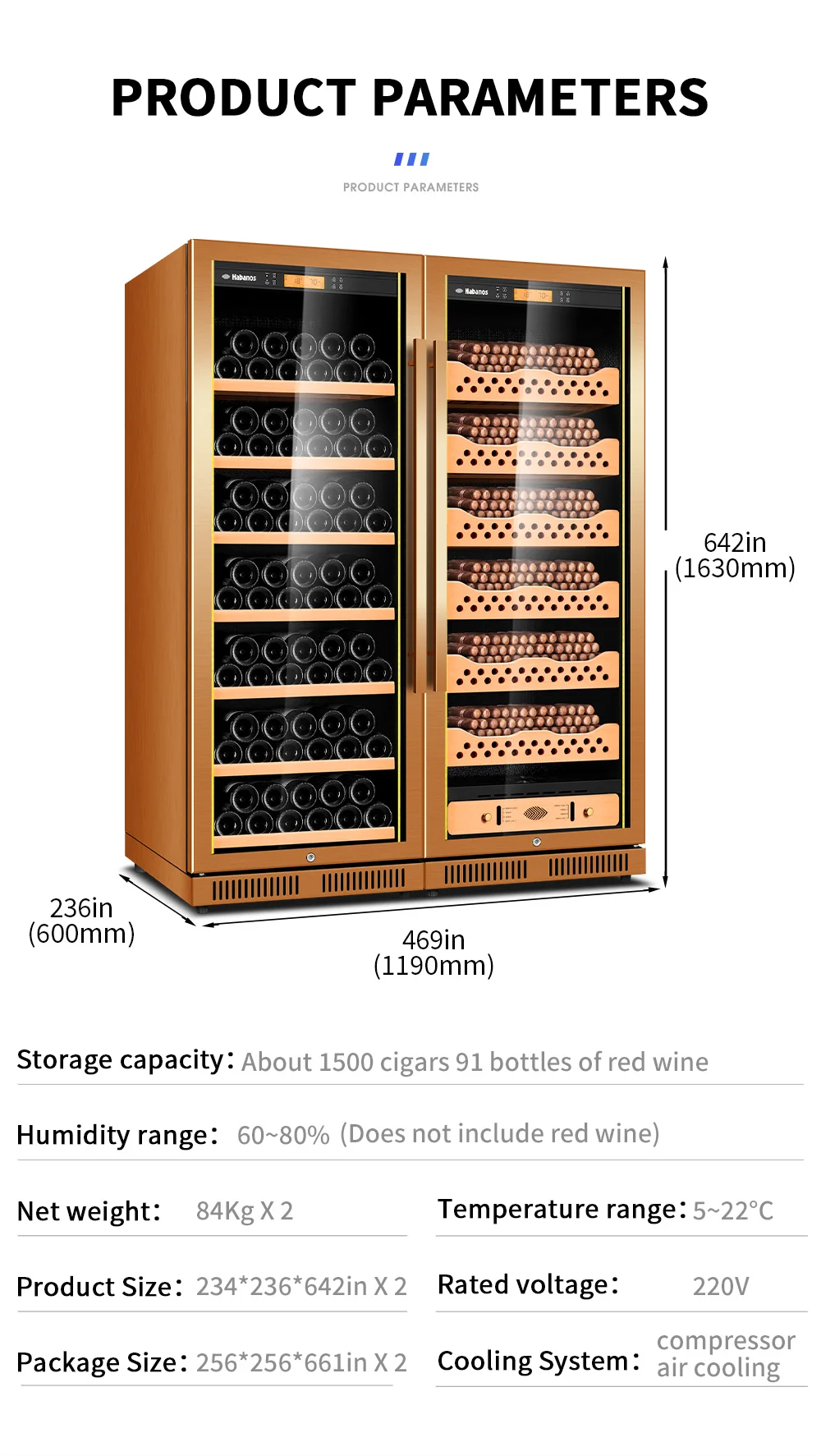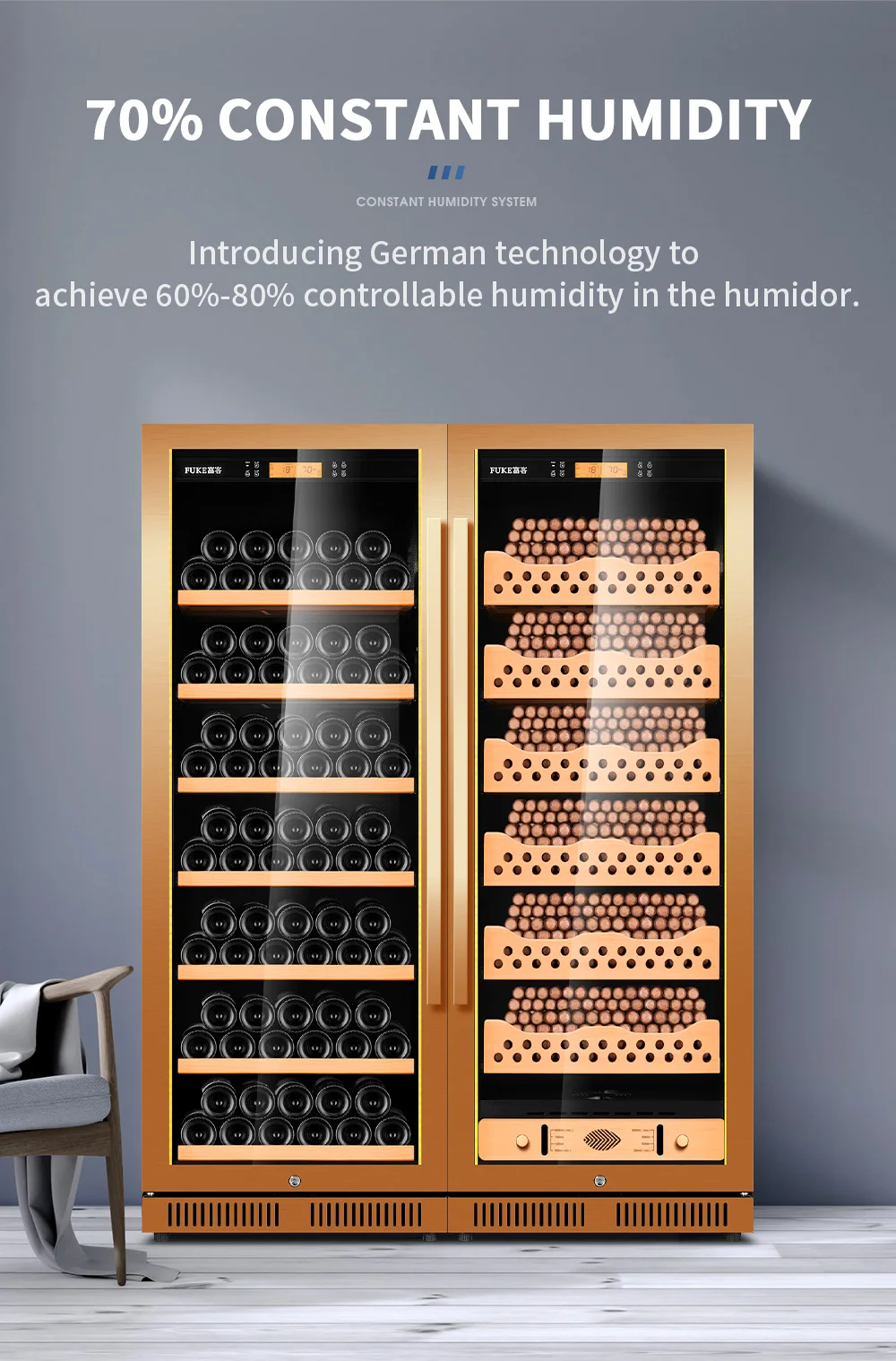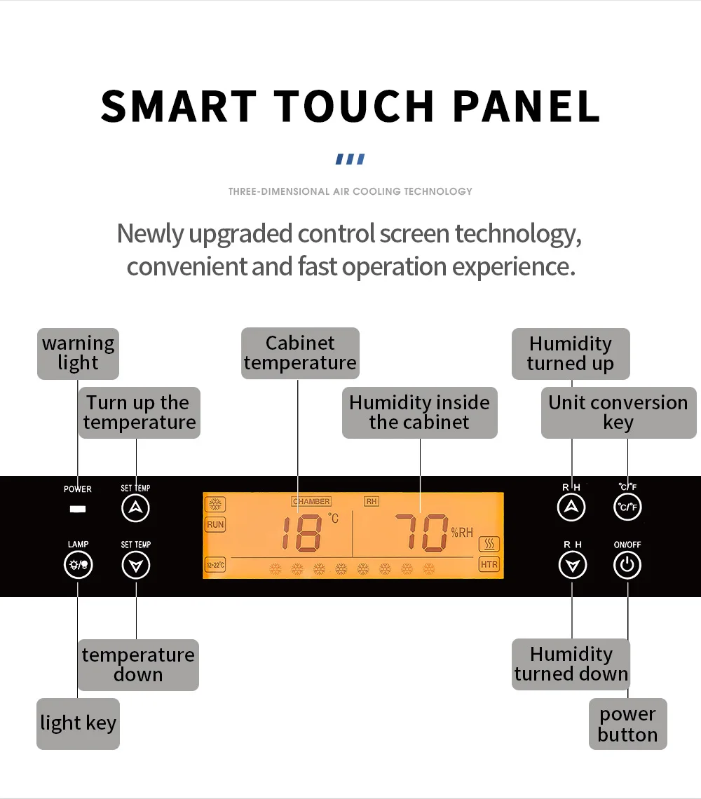 Cigar Cabinet Led Cigar Humidor Large Capacity Spanish Cedar Wood Luxury Cigar Cooler Constant Temperature and Humidity 168CT1