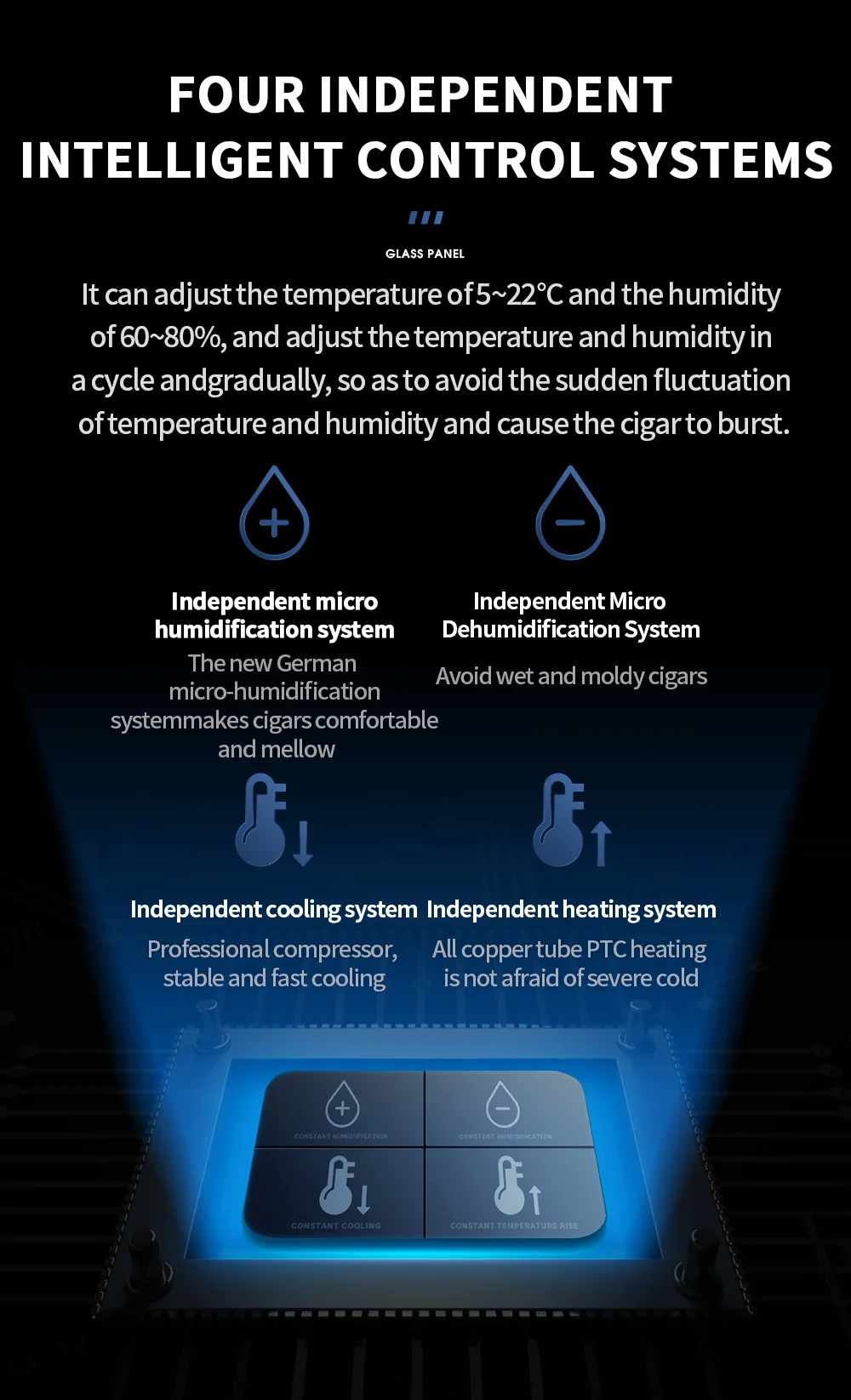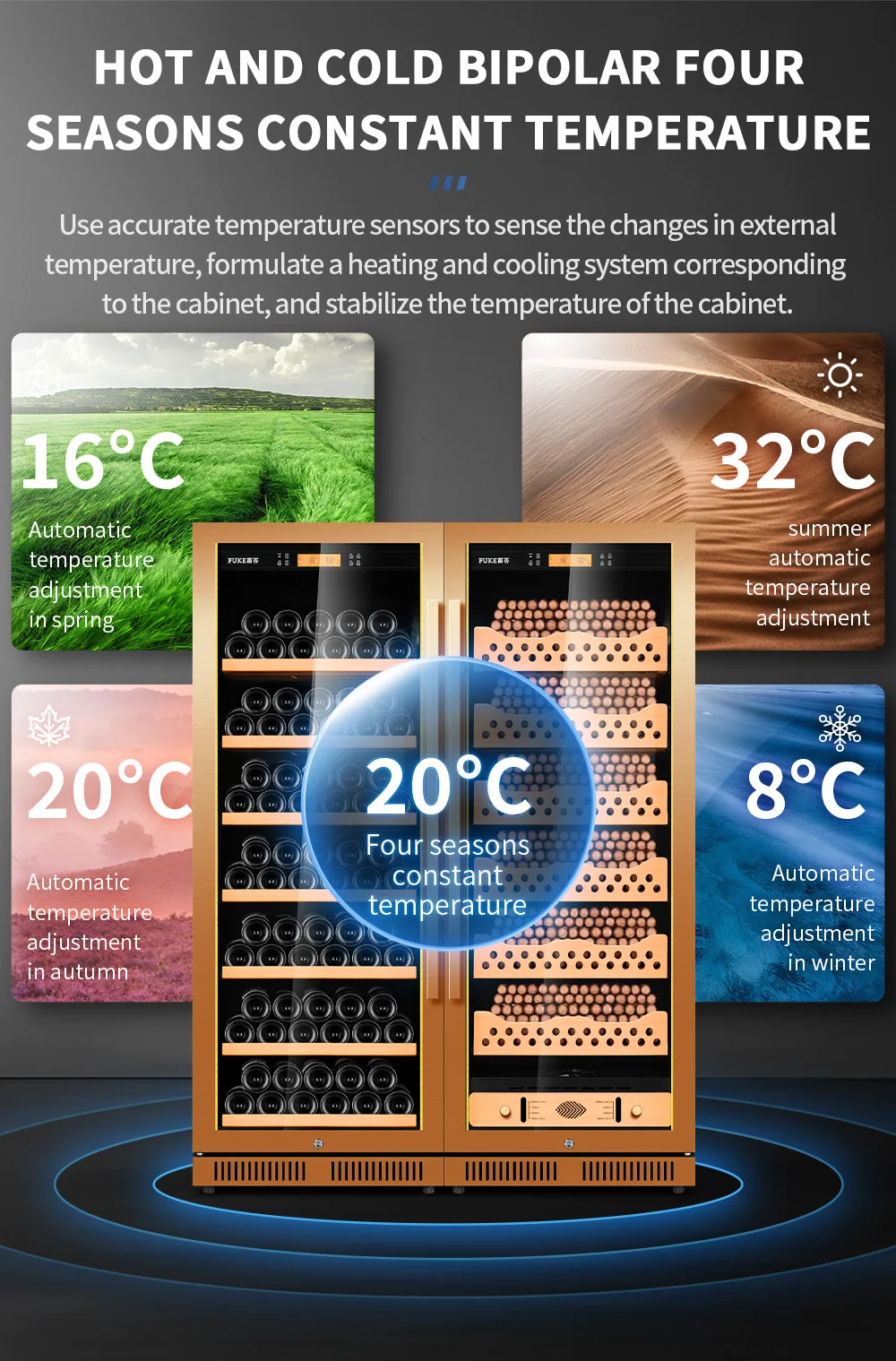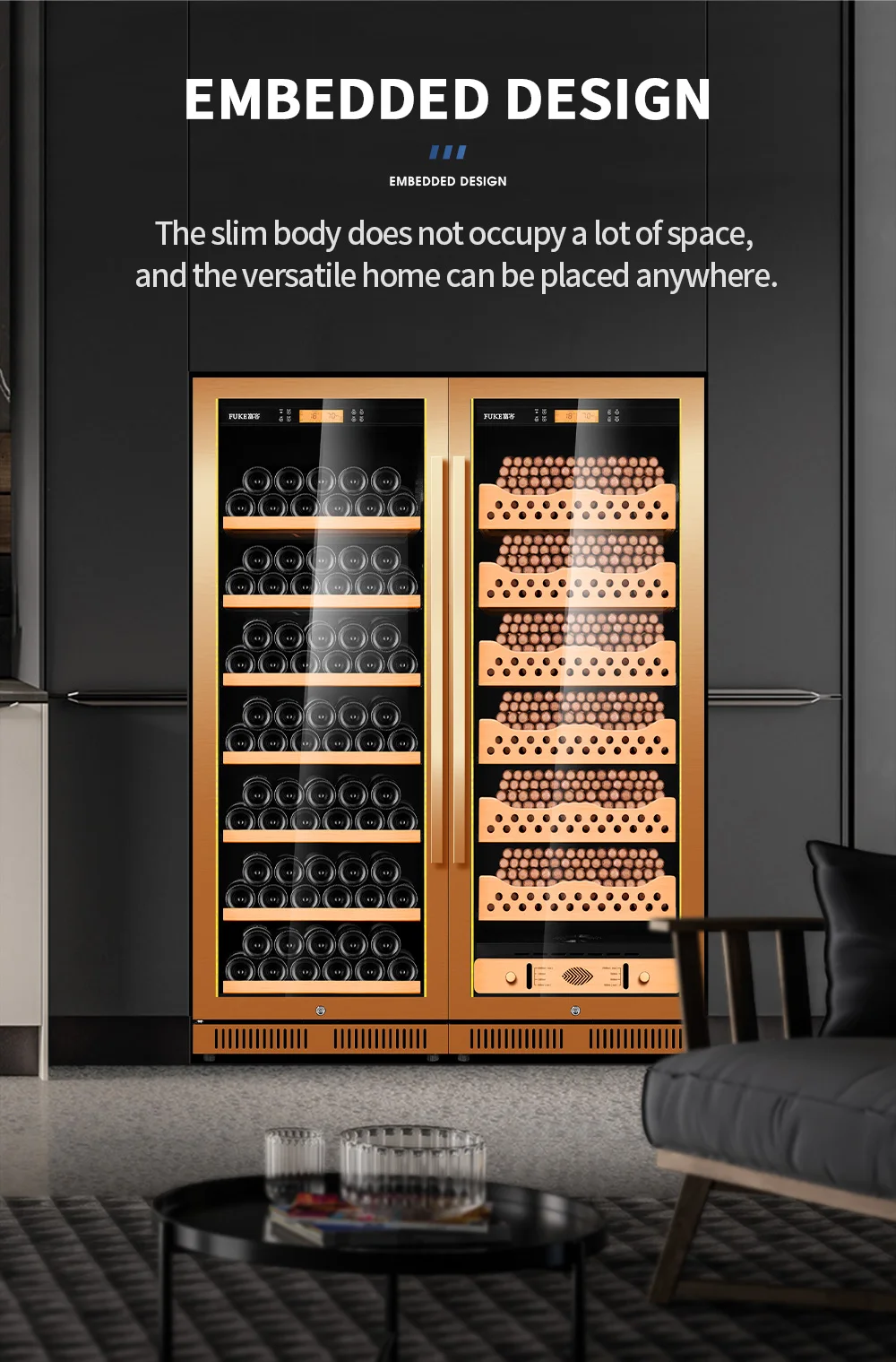 Cigar Cabinet Led Cigar Humidor Large Capacity Spanish Cedar Wood Luxury Cigar Cooler Constant Temperature and Humidity 168CT1