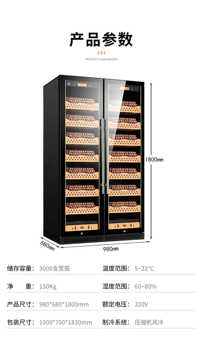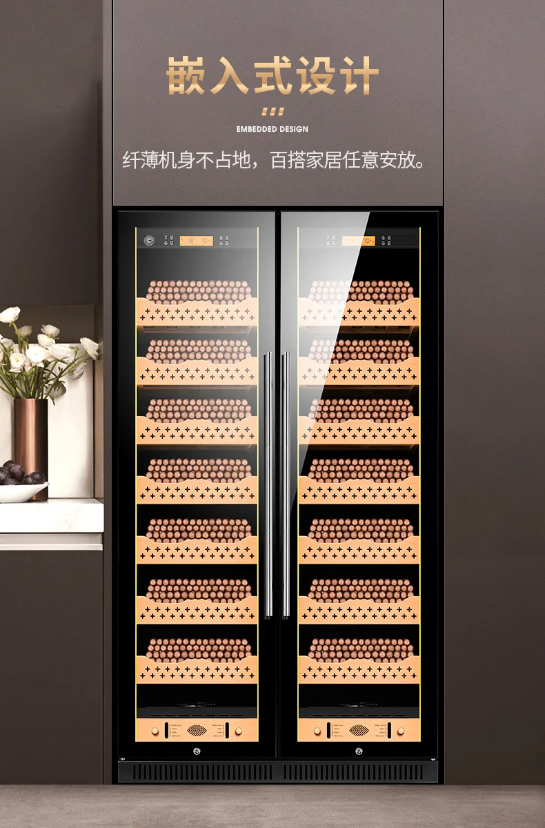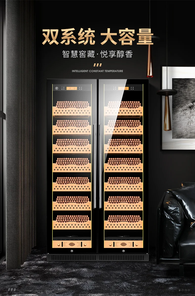 Cigar Humidor Cigar Cabinet Constant Temperature Humidity Cigar Tea Wine Cabinet Solid Wood Double Door Beech Wood Shelf Cl-320C