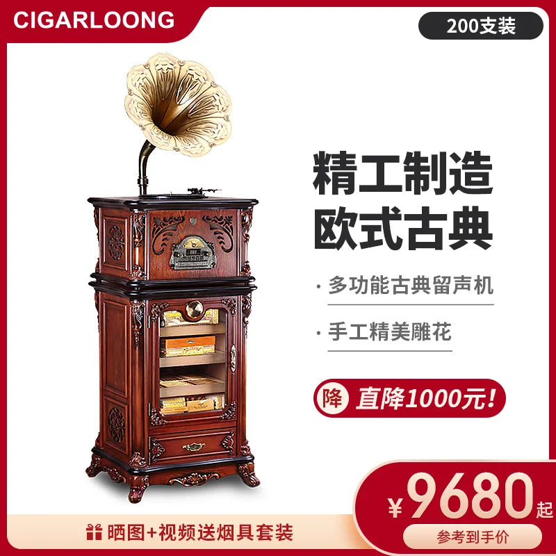 CIGARLOONG Cigar Box Collection Classic Multi-Functional Phonograph Cigar Moisturizing Box Gramophone Cigar Humidor Cl-660c