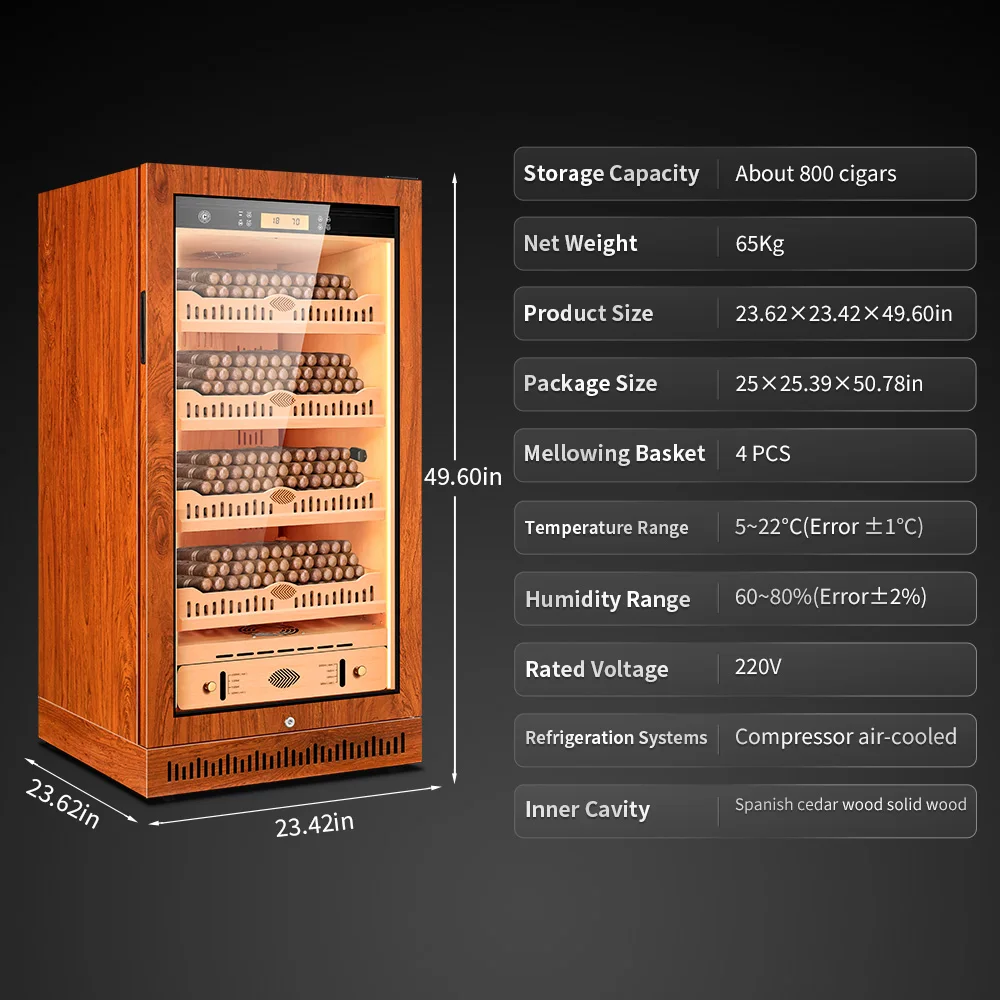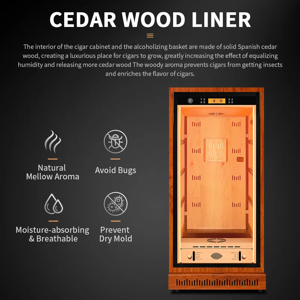 CIGARLOONG Cigar Cabinet Cedar Wood Inner Control Constant Temperature and Humidity Energy Saving Wine Cooler Cigar Humidor 80C1.