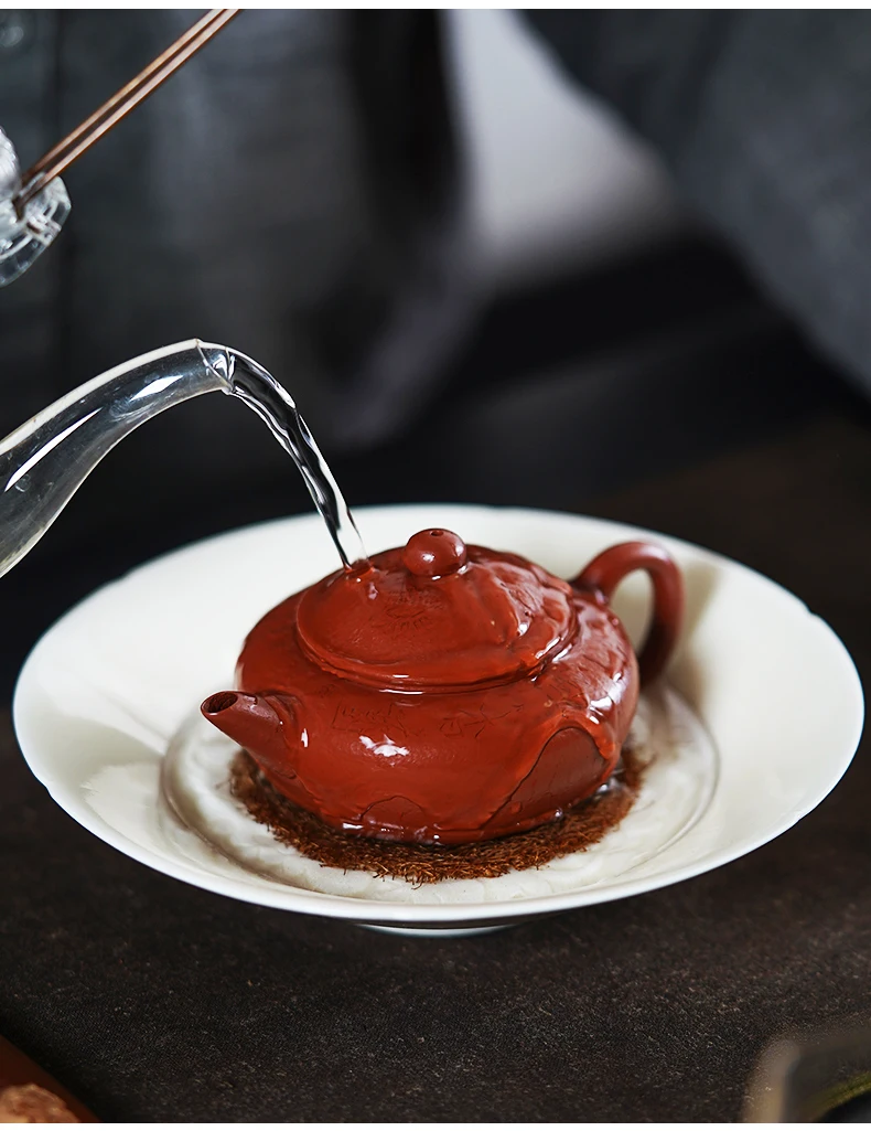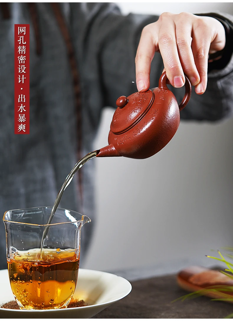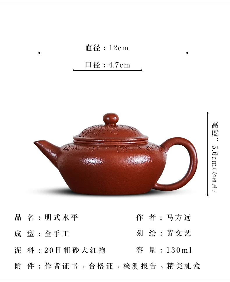 |clay pot famous Ma Fangyun pure handmade high-quality Kung Fu tea pot raw ore Dahongpao Ming style horizontal pot