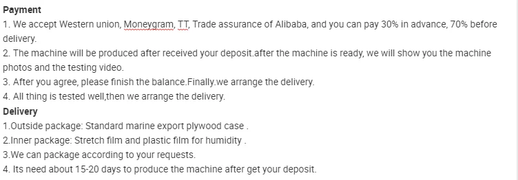 4. Its need about 15-20 days to produce the machine after get your deposit.