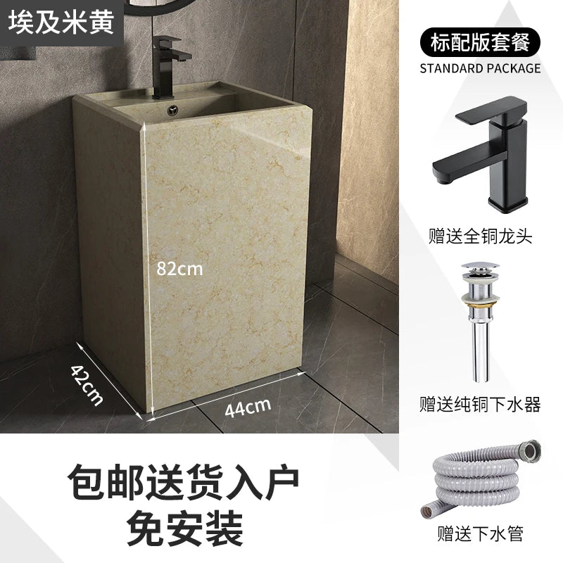 Column basin, washbasin, integrated column type washbasin, marble floor standing balcony, outdoor rock slab washbasin