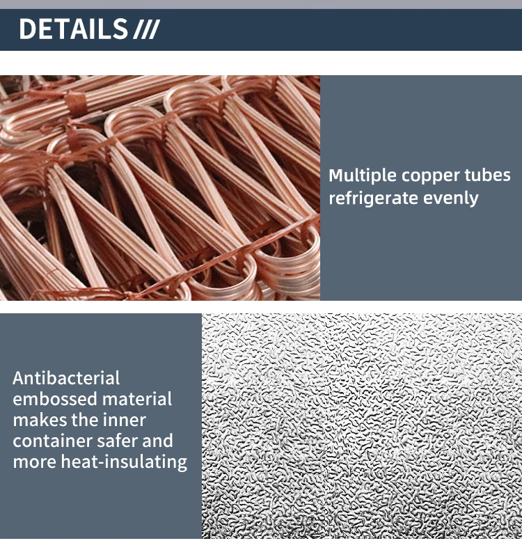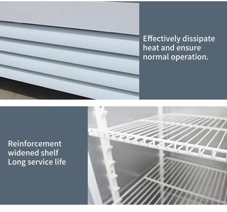 1.Equipped with energy-saving bass fluorine-free compressor We adopts brand compressor, with stable performance, low noise during operation and quiet life. 2.Optimize the refrigeration system to save electricity quickly We use computer simulation to optimize the refrigeration system and adjust reasonably.Reasonable adjustment of each refrigeration management, stable and smooth release of cold air, effective improvement of refrigeration efficiency, and substantial reduction of energy consumption. 3.Fluorine-free refrigerant, creating environmental protection Adopt low-temperature gas-free refrigerant, which is energy-saving and environment-friendly;Energy-saving technology allows you to easily enjoy a low-carbon and environment-friendly life. 4.As the heart of the display cabinet, we adopts brand compression phase,higher efficiency, smaller noise, stronger direct cooling performance.