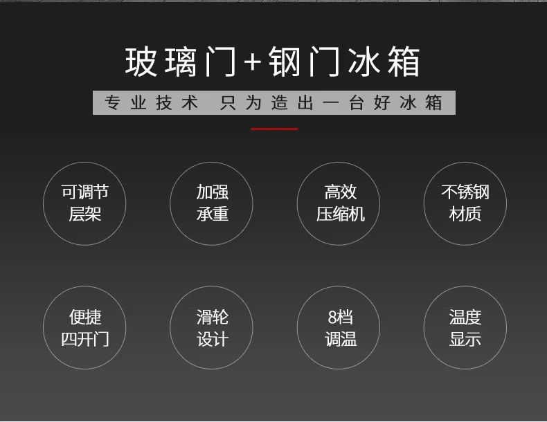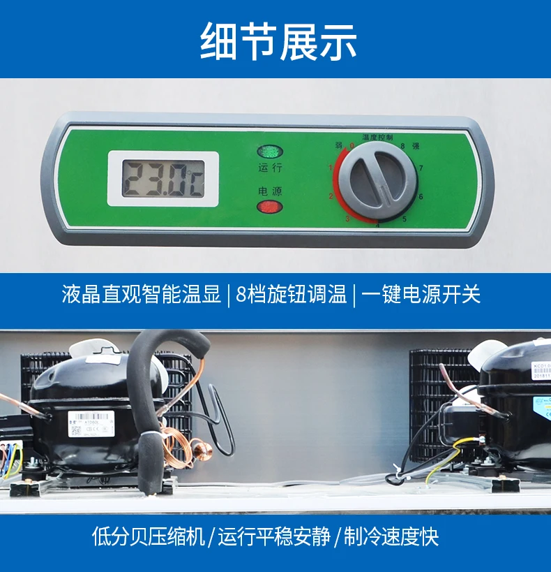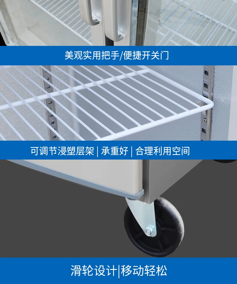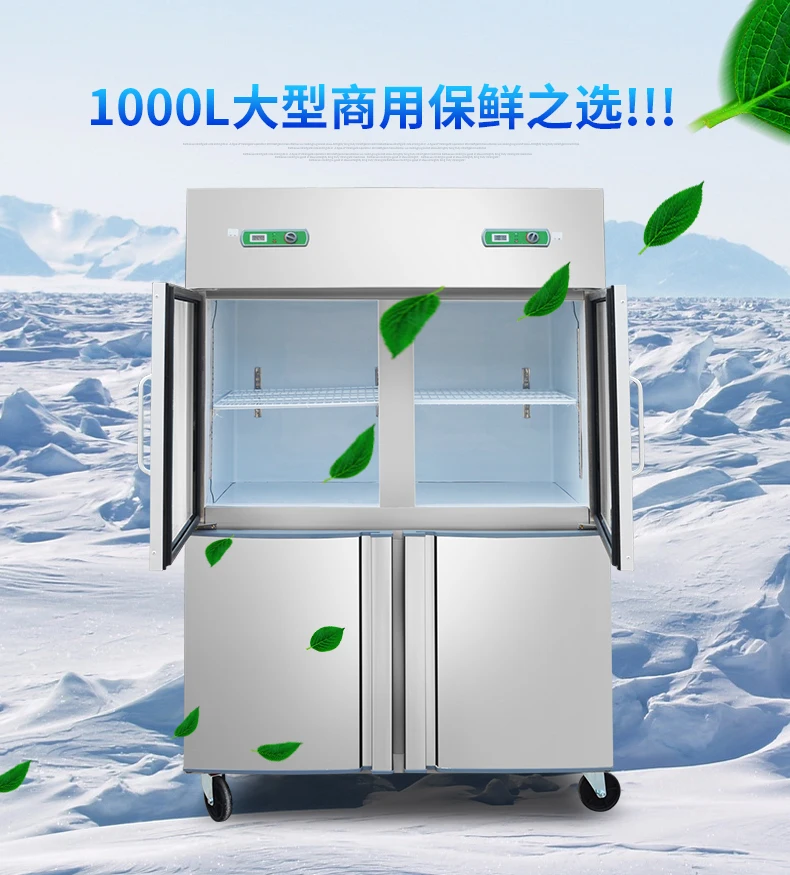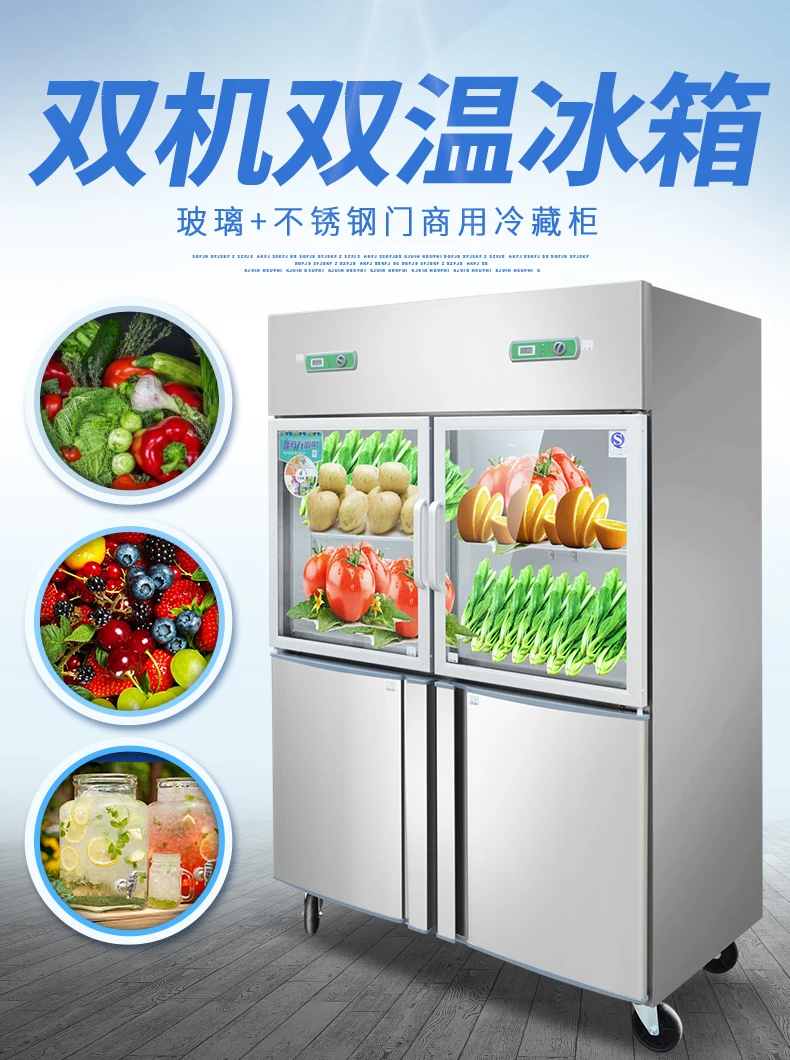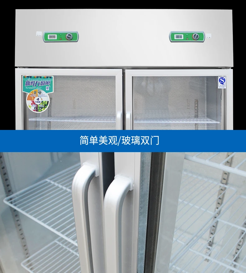Commercial four-door refrigerator glass+stainless steel door freezer vertical double-temperature refrigeration and fresh-keeping