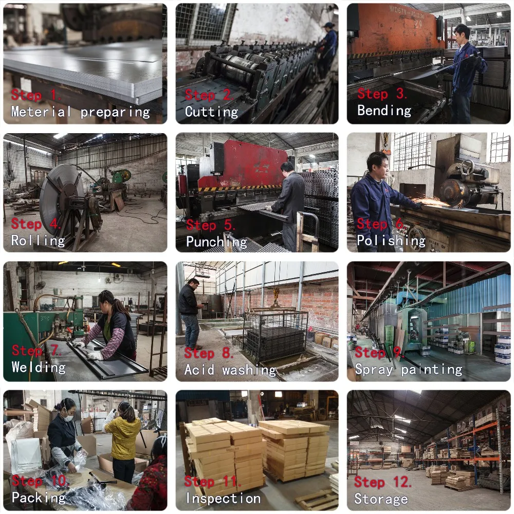 We have our own factory and a total of more than ten cooperation factories, so as to ensure the most advanced equipment and professional technology. Therefore, our products are very competitive in price and quality in the market. Our mainland branch office is located in known as follower city, Guangzhou city, Guangdong province. Our factory is in Foshan Nanhai district, factory building area of 6400 square meters. Raw materials, welding, cutting, acid-washing, phosphorizing, spray coating, packaging are our production procedure. With automatic cutting machine 4 units, 5 CNC wire drawing machines, 16 to 120 tons of punching machine, automatic pipe bending machine 3 units, CNC bending machine 6 units, shearing machine 3 units, welding, argon arc welding 12 points, 14 gantry welding head, long, single head spot welding machine 30 units, 8 kinds of polishing machines, 2 sets of welding robot, fiber cutting machine, automatic electrostatic spray line, light semi-automatic manual spray room 3, automatic plating line 1.