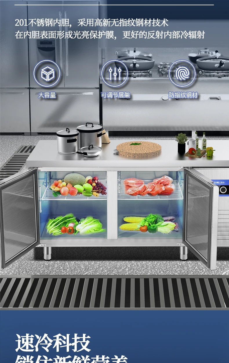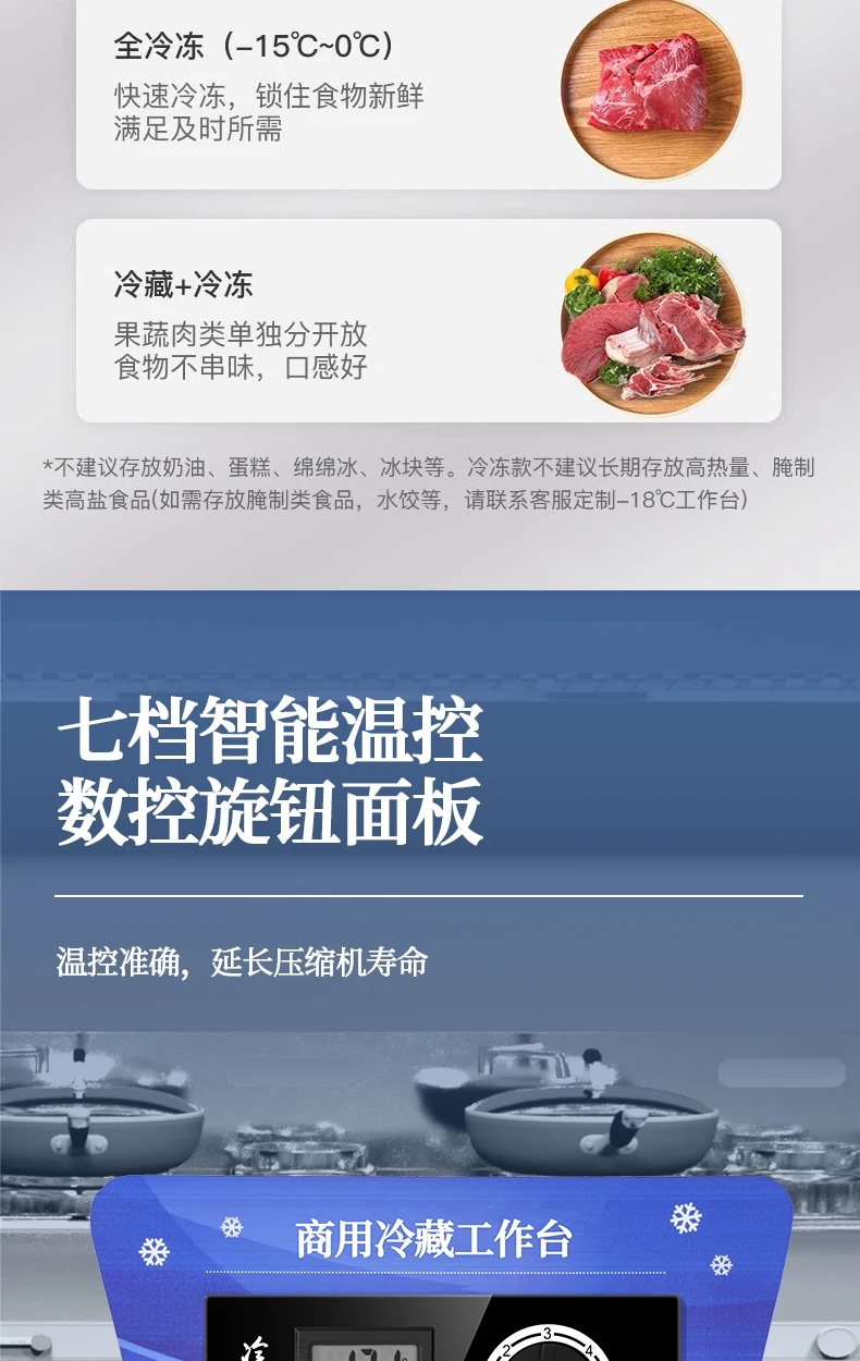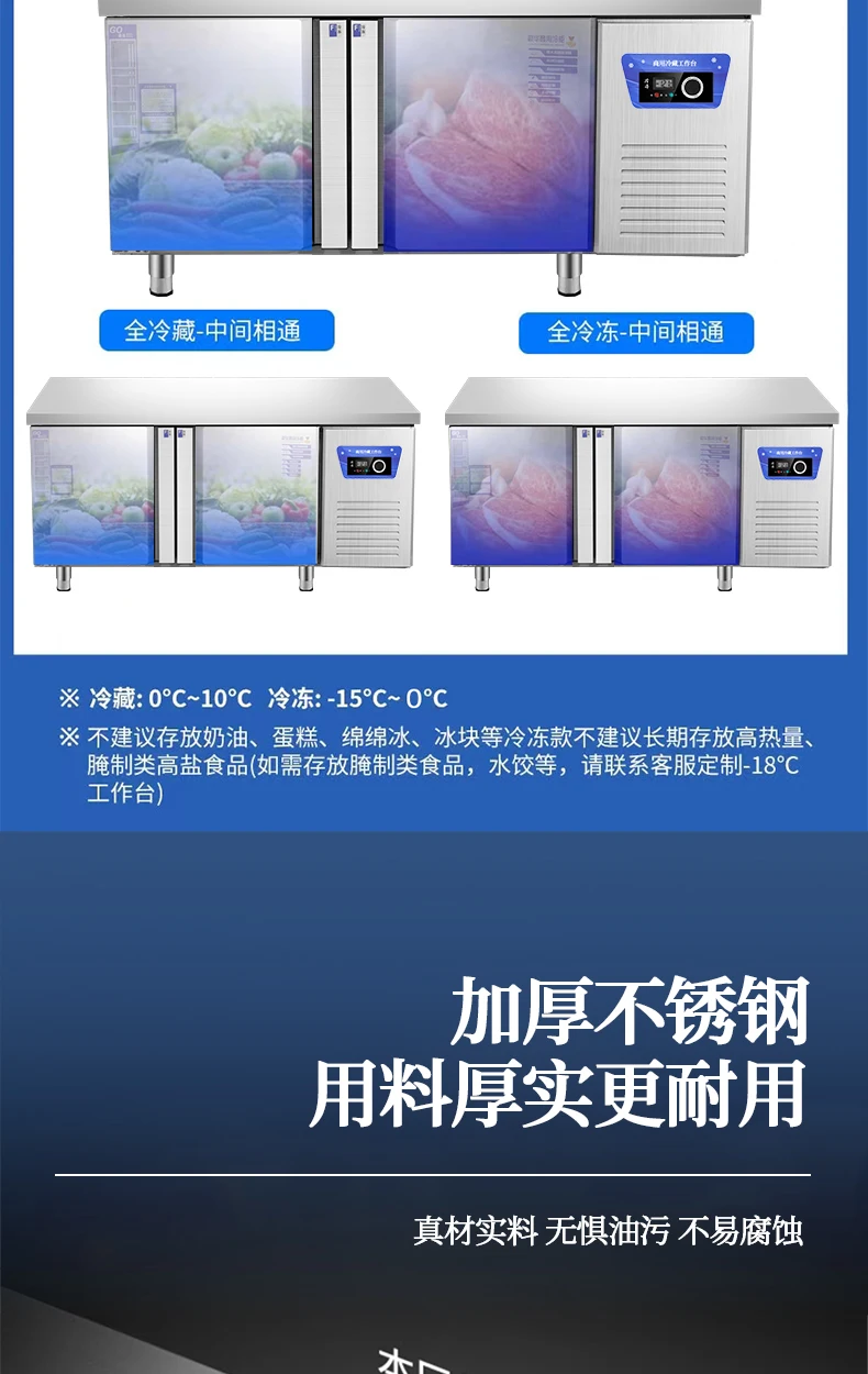 Commercial refrigeration workbench, freezer, freezer, stainless steel operation console, refrigerator, flat cooling and preserva