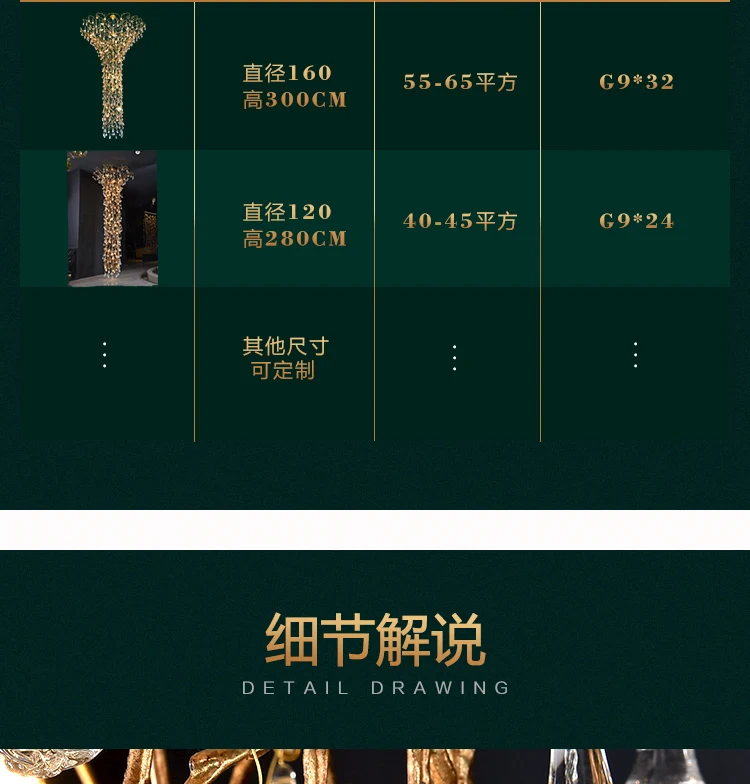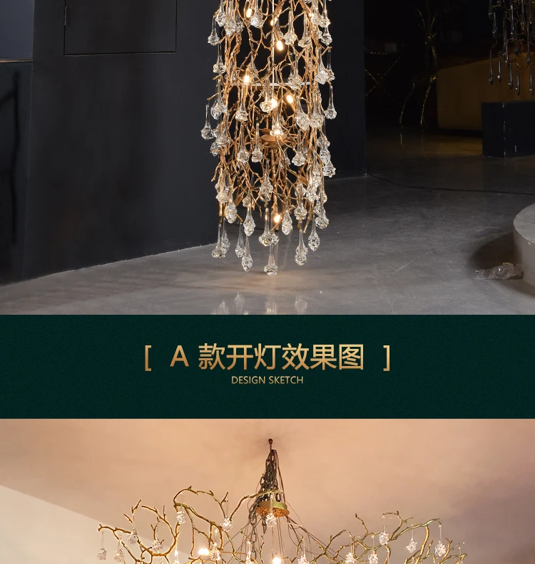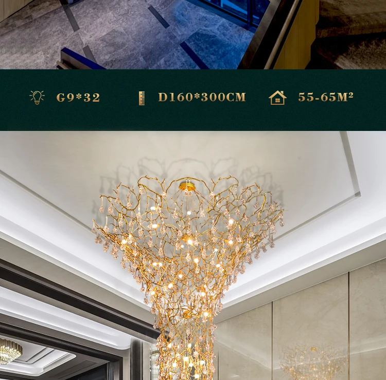 Contemporary Crystal Chandelier Duplex Villa Hotel Stair Light Luxury Grand Sales Department