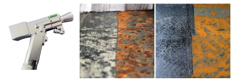 Metal surface rust removal, paint stripping treatment, oil cleaning, painting, coating cleaning, welding surface, spraying surface Dispose. Small laser cleaning head, light and convenient, can work for a long time, power supply can run. No consumables, no damage, no pollution