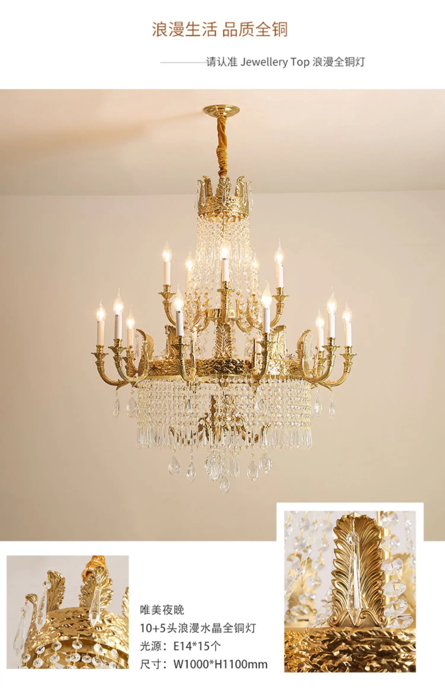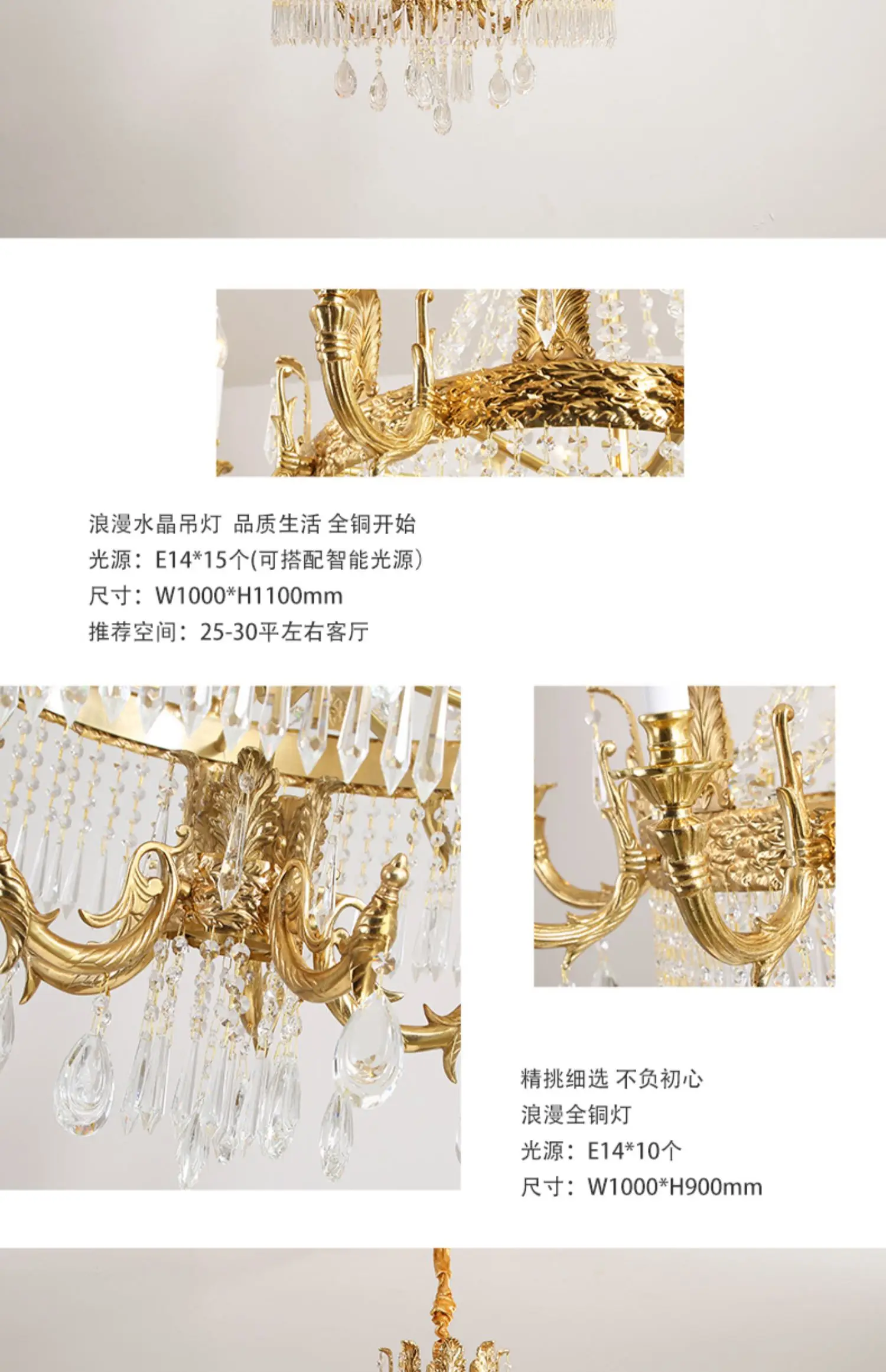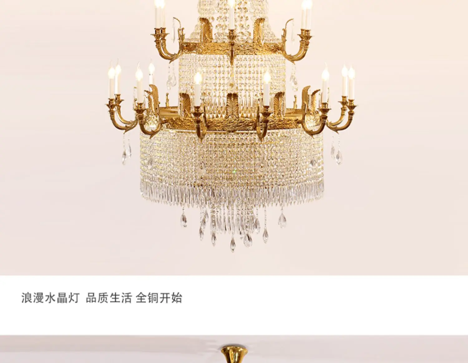 Copper Crystal Chandelier Living Room Dining Room Stairs Duplex Villa Luxury Atmosphere